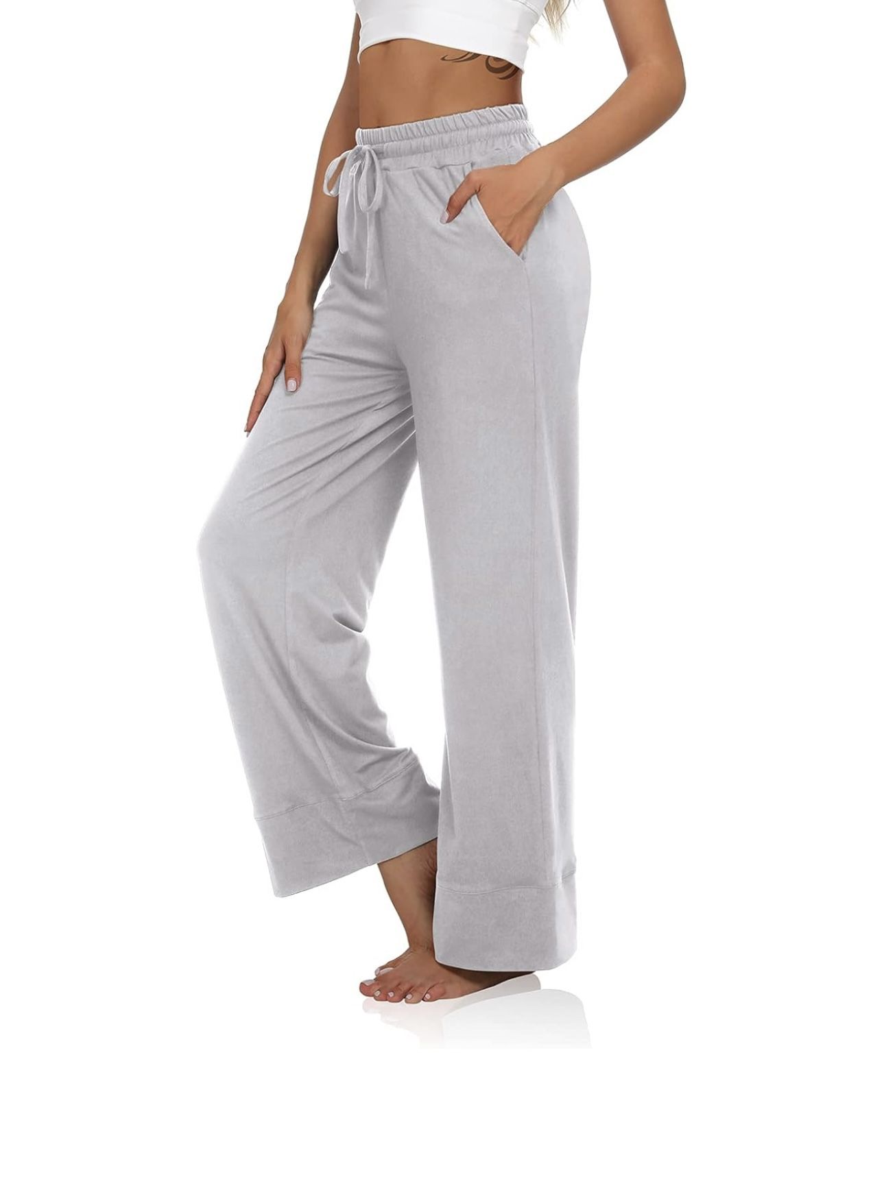 Women's Wide Leg Yoga Pants Crop Drawstring Workout Comfy Lounge Pajama Joggers Sweat Pants with Pockets (Gray, X-Large)