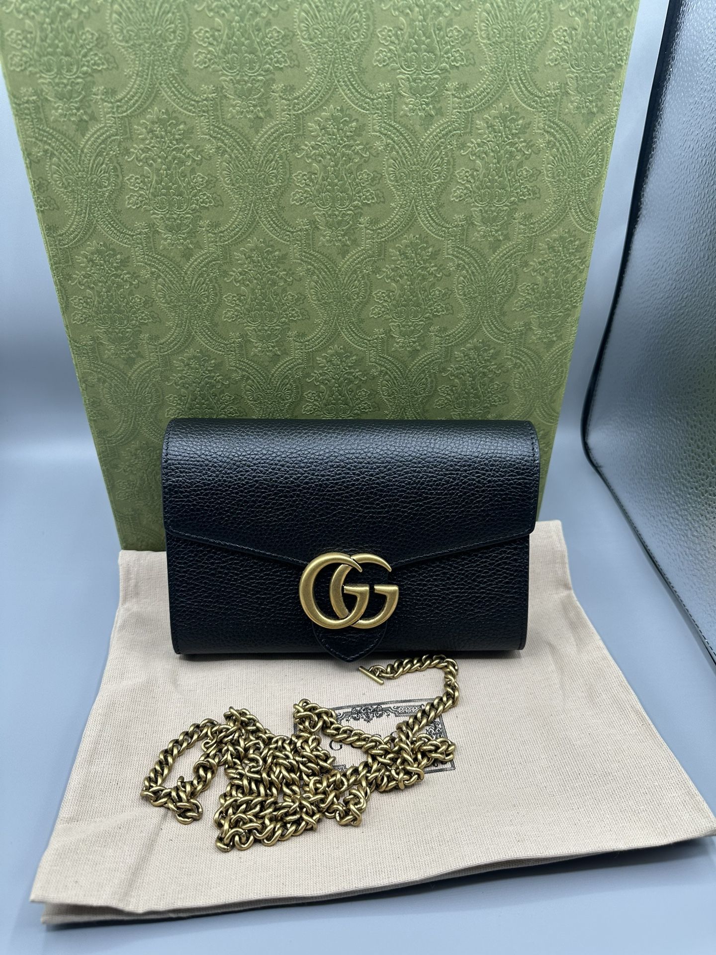 Brand new in box, Gucci wallet on chain perfect bag with plenty of slots for credit cards, etc.. It’s an iPhone comes with certificate authenticity dust bag, and Gucci box. Perfect gift for the holidays. W 8” H 5” D 2”