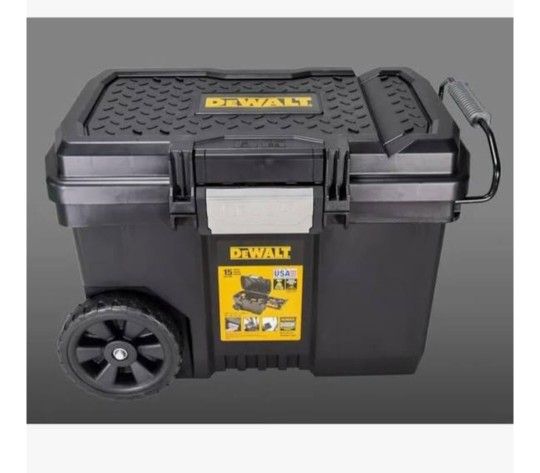 DEWALT Rolling Tool Box: 24 9/16 in W 16 in D 16 3/8 in H, Plastic, Black, Hinged Lid