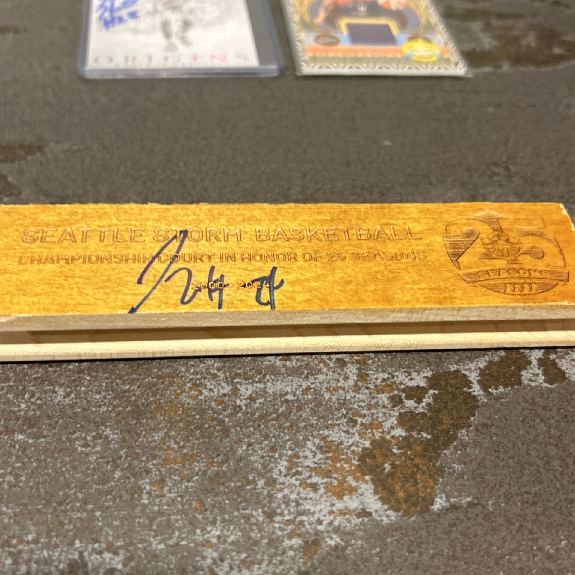 This is a rare opportunity to own an authentic signed piece of Seattle storm history This is an actual piece of the Seattle storm court that was played on from 2000 - 2024 on the old key arena court These floor boards where given away at the start of this season Autographed in person in blue sharpie by Jewell lyod Unsigned pieces or going for $99 Taking offers