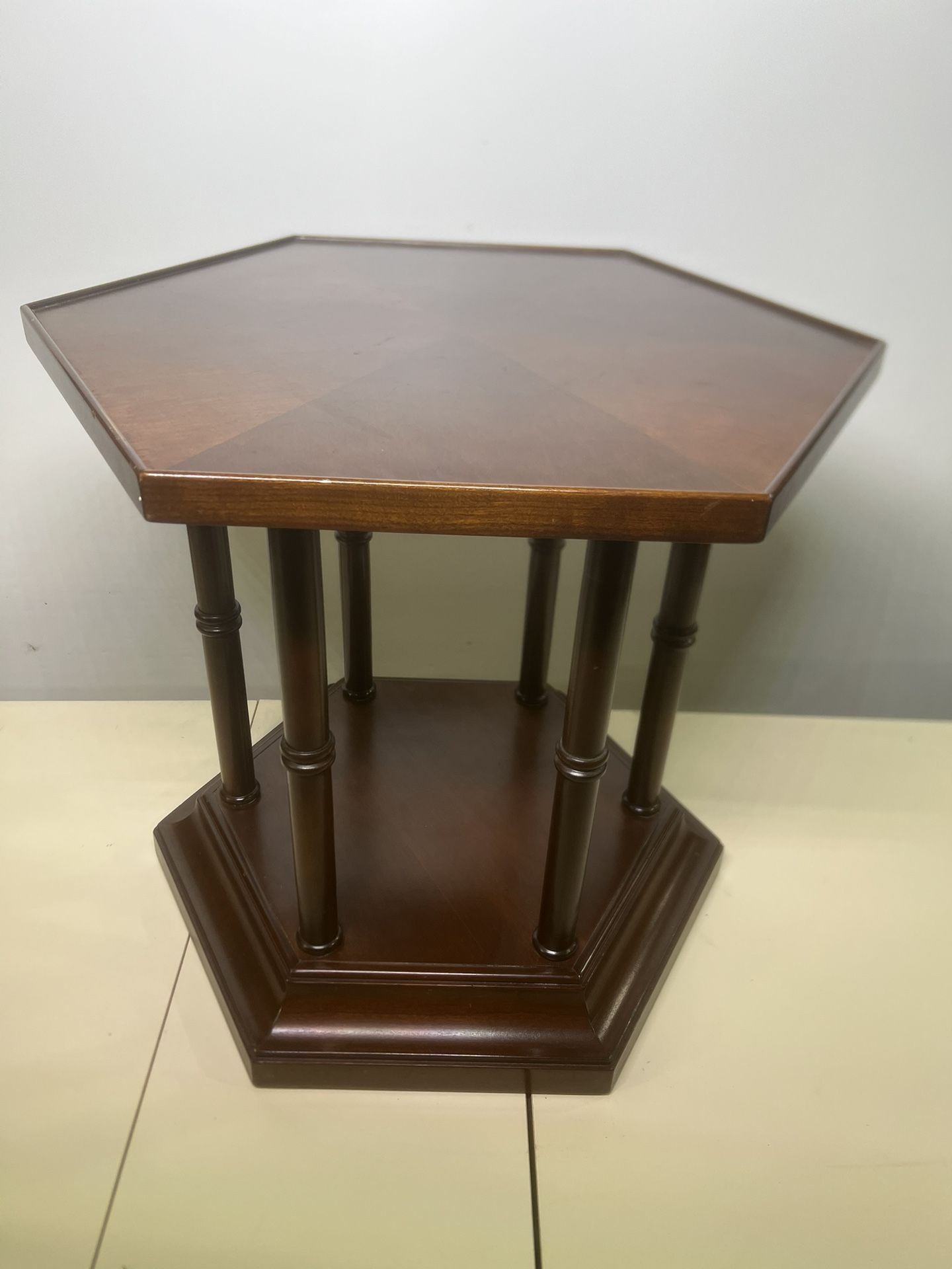 Maryland Classic Vintage Hexagon End Side Table Brown End Table Side Table . Used in good condition with some minor cosmetic blemishes. These blemishes are in the form of lite scratches and scuff marks associated with normal usage and time. This is an absolute gorgeous and stunning piece.