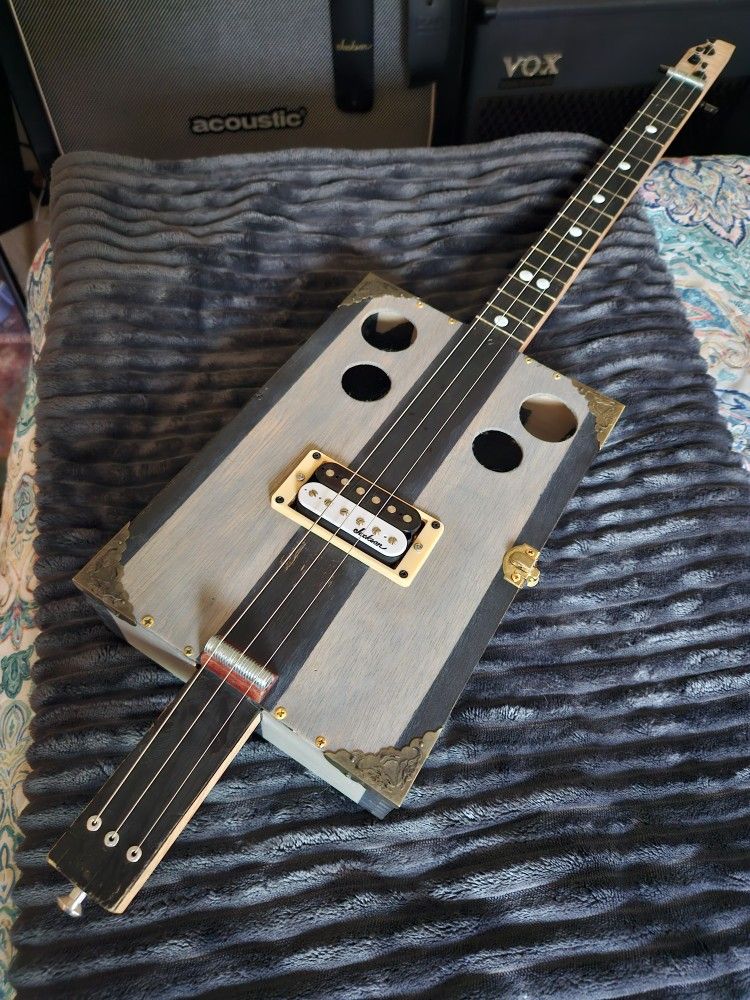 Hand Crafted Cigar Box Slide Guitar! Fitted with Jackson Pick Up, and Tuners! With Hand Made Bottle Neck Slide! Delta Blues Machine! Swampy and heavy! Sounds Awesome and plays just as good! Make an offer, trades welcome, check out my other posts! Thanks for looking.