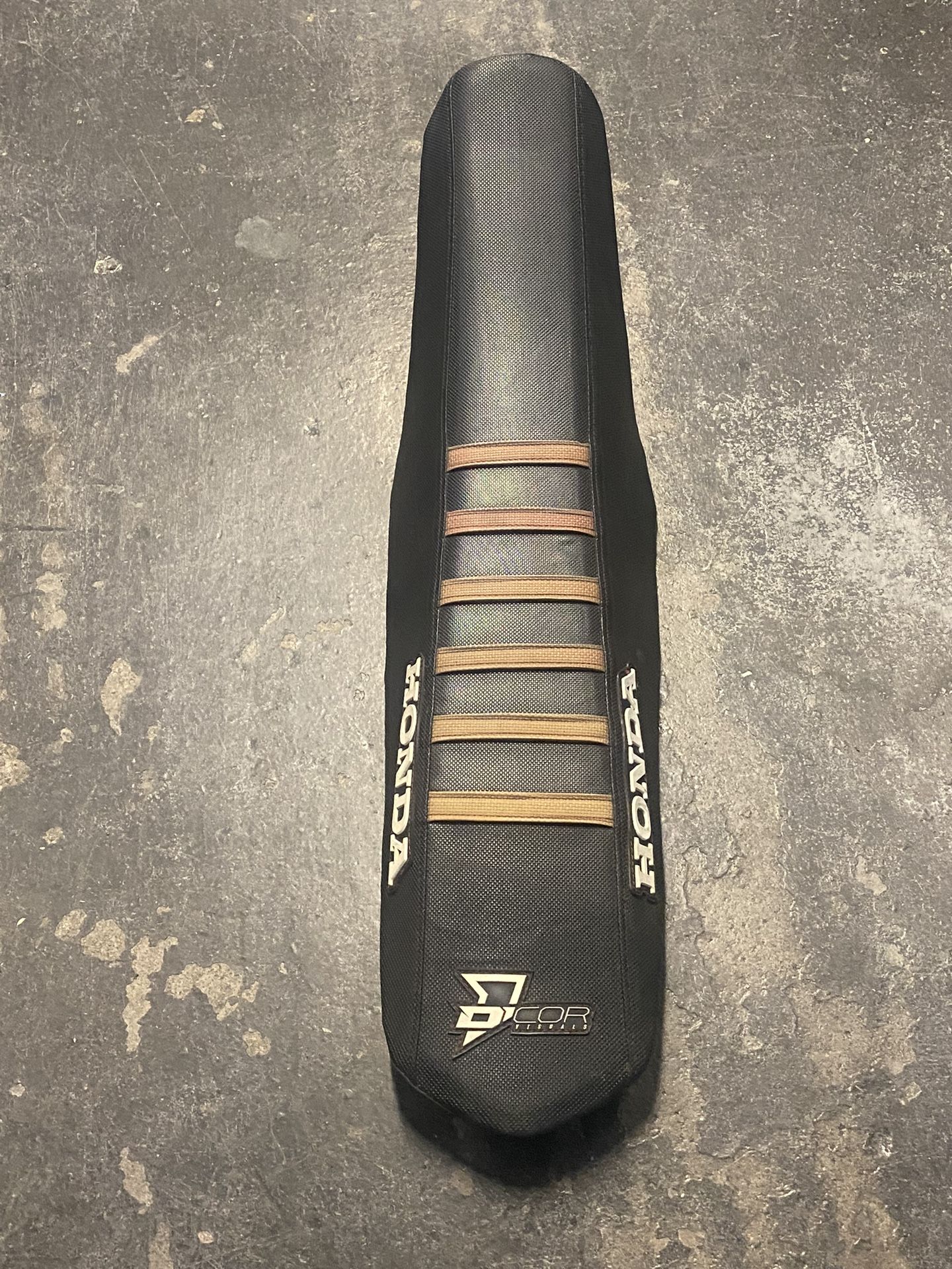 I have a seat that’s already covered, Honda gripper seat cover to be exact. I put the OEM seat back on my bike, this is an additional seat that I don’t need. All the tabs are there nothing’s broken. It’s in great usable shape.
