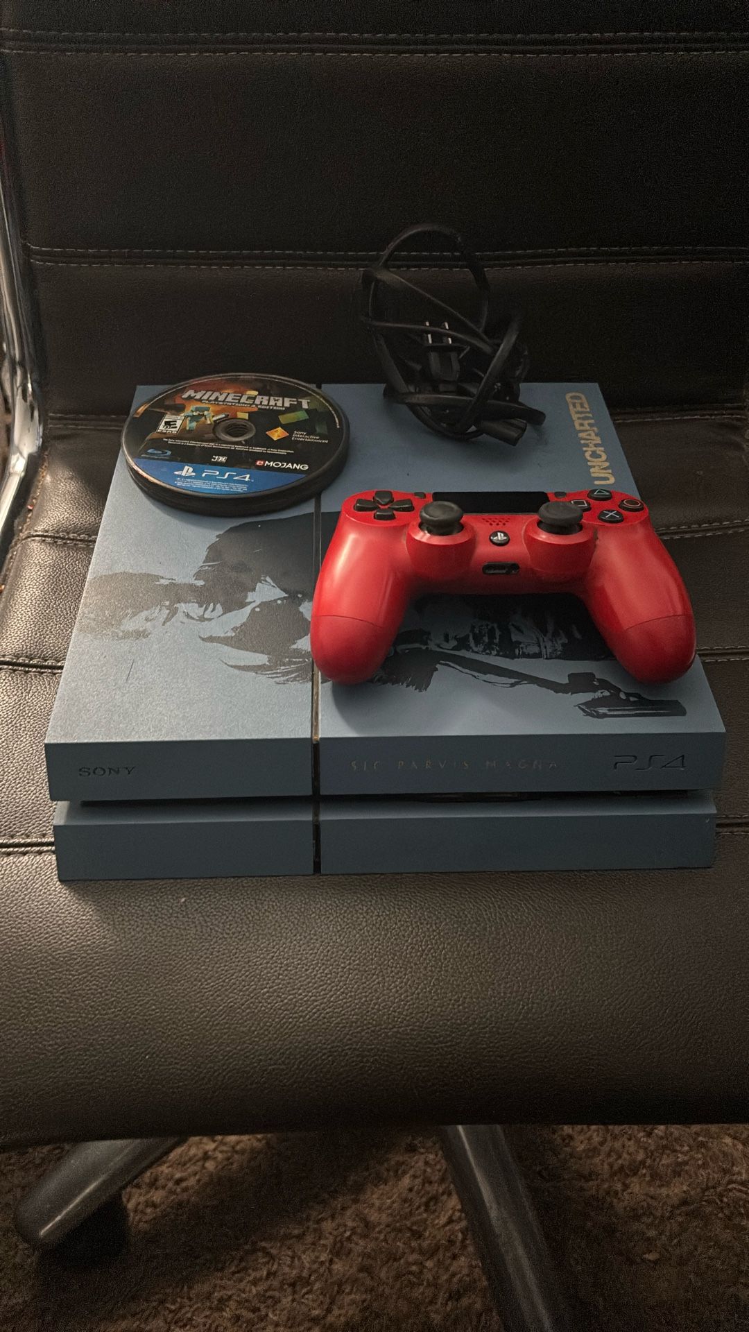PS4 w/ power cable that includes, 1 PS4 Controller, 10 disc games ( FIFA 14,18,19,20,22), COD bo4, GTA 5, Minecraft, Batman Arkham Knight, Uncharted: Nathan Drake Collection.