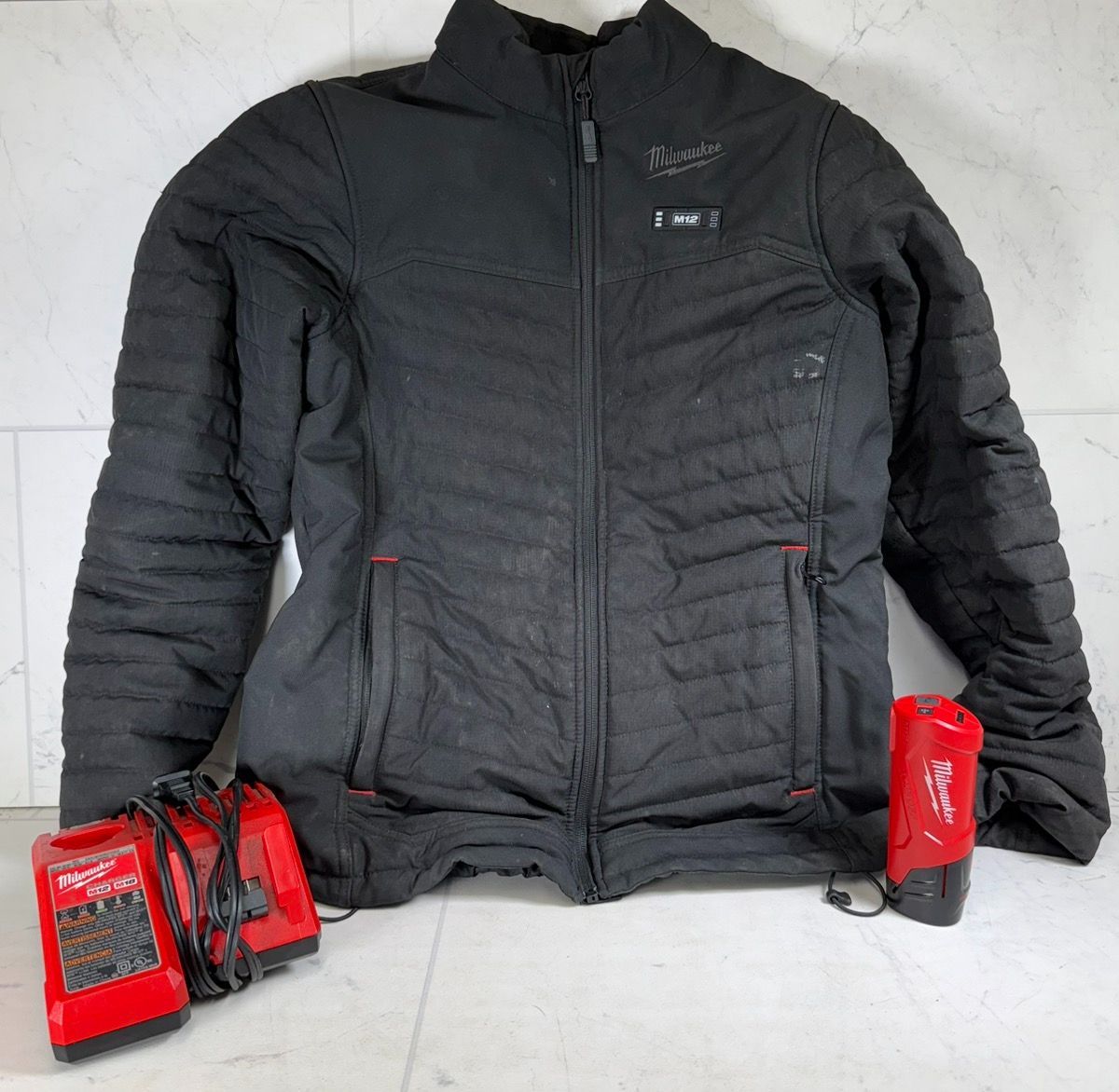 Milwaukee M12 ToughShell heated jacket in great condition. Men’s size small with 12V cordless heat for cold-weather work or outdoor use. Includes a 3.0Ah battery and charger. Fully functional, with some stains present. More gear and apparel available at A1 Hawk Gladstone 📞 503-656-0000 📍 20005 McLoughlin Blvd