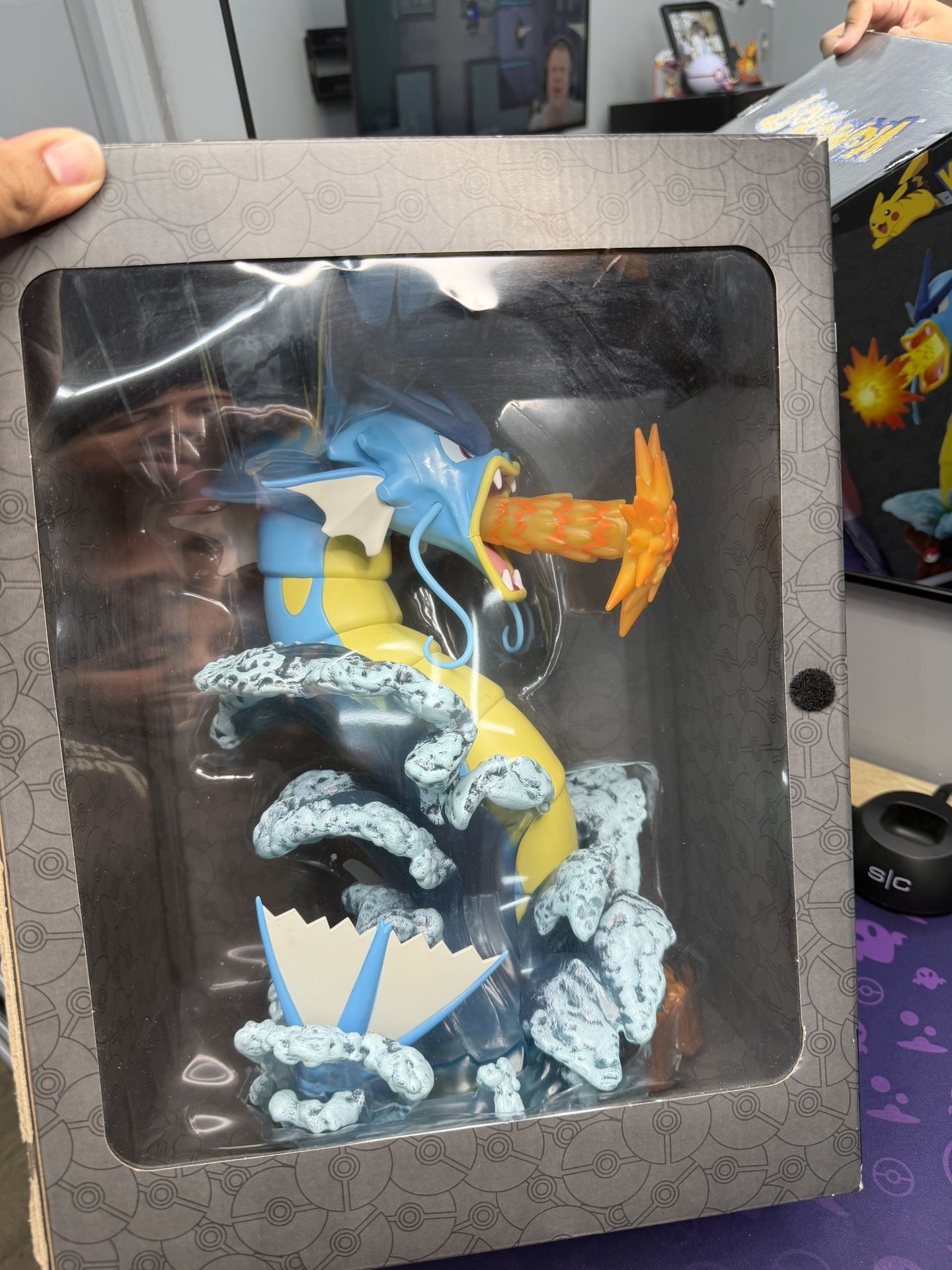 A light up Gyarados stand. A nice collectible. Brand new. Not been open. Battery's included. 1ft tall.