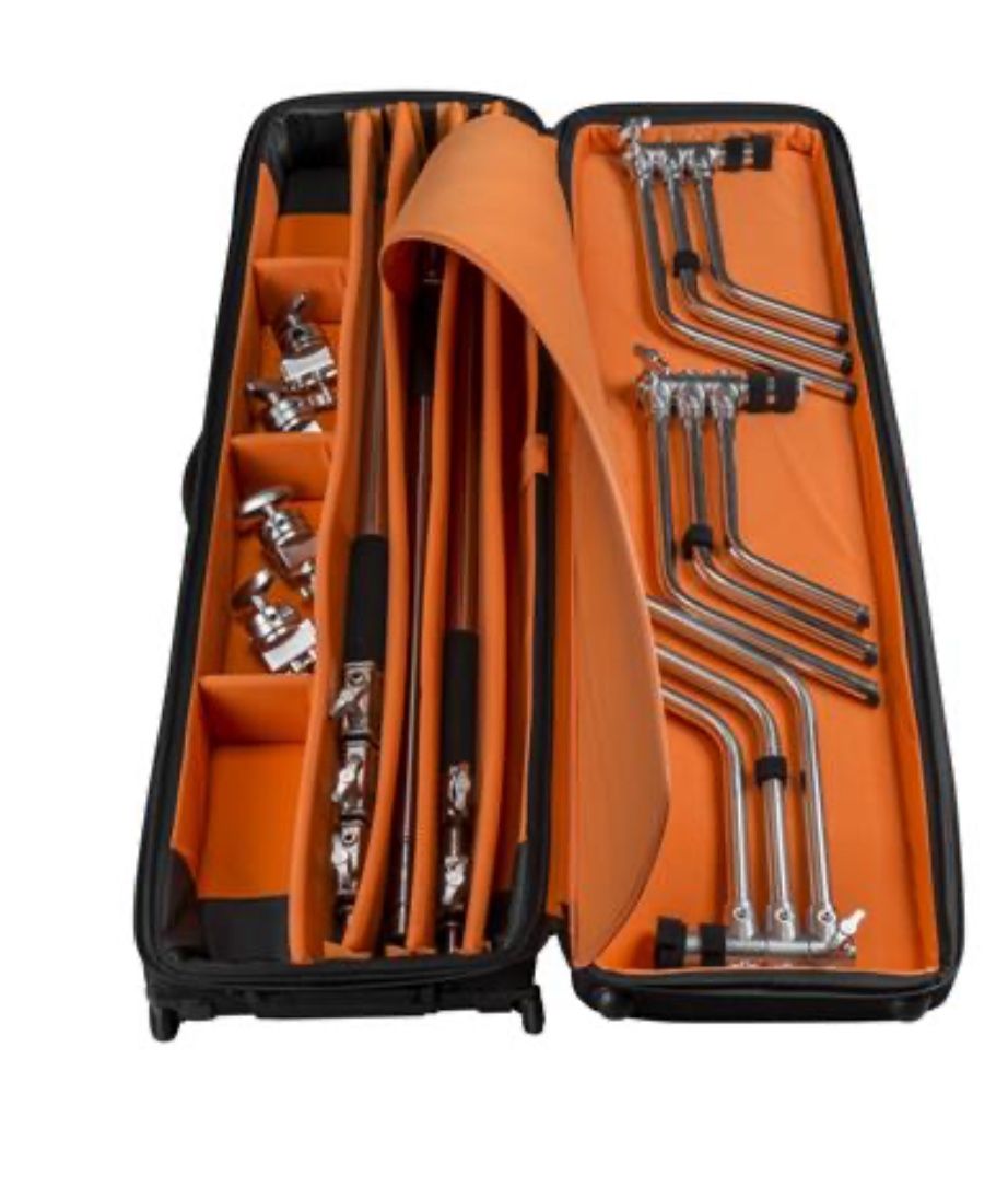 Slinger L6 BigBag C-Stand Rolling Kit Bag for 3 Stands 3 complete C-Stands transport with ease and class 2 ABS wheels smooth the way 4 Padded Dividers protect columns and support from abrasion Weather seal zippers protect the gear Side carry handles safely balance pickup Accessory Sections make order for all the hardware Padded lightstand divider with velcro straps Outer business card/ID holder Selling for: Used - $150 Purchased New - $220