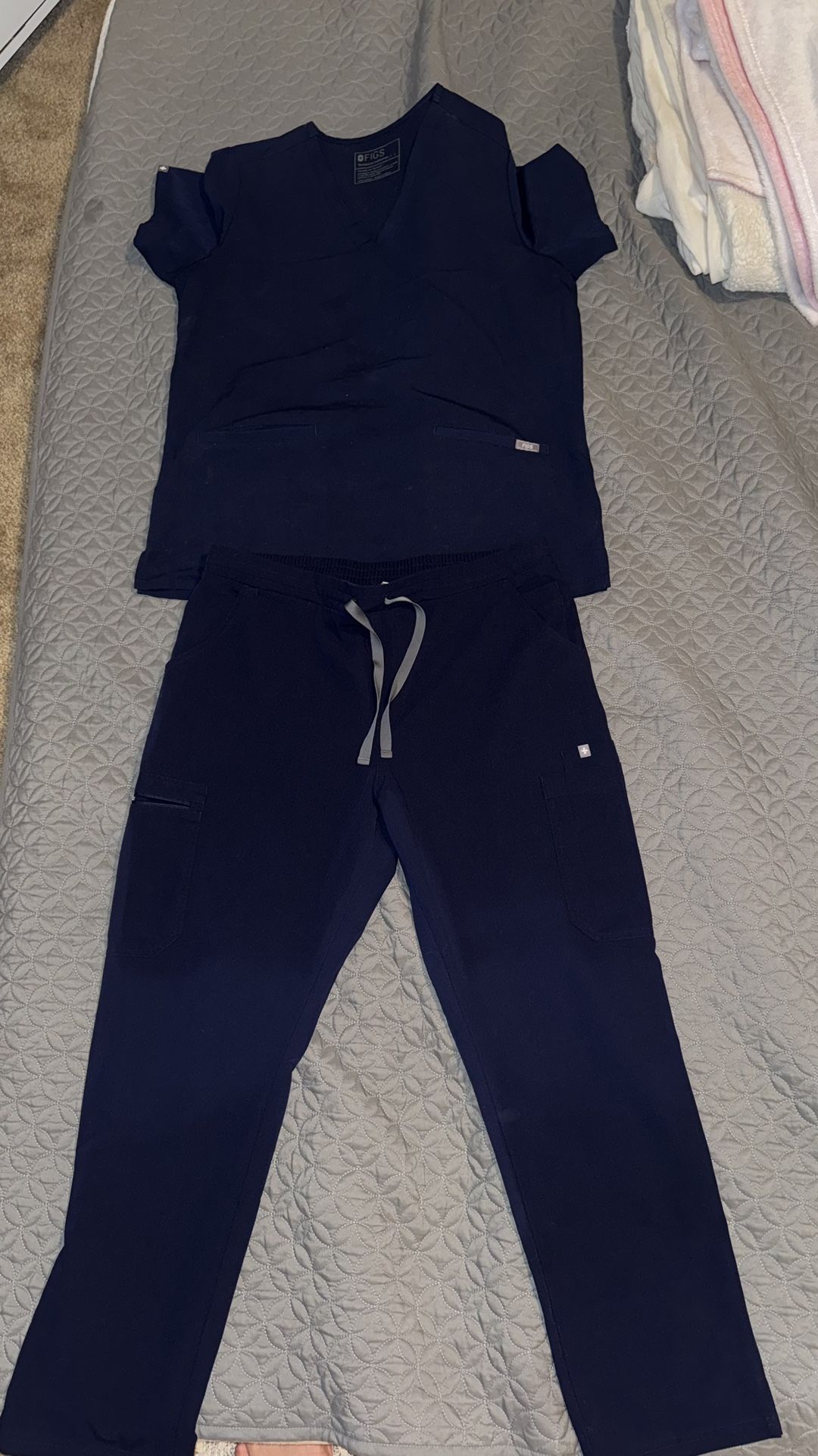 Figs set navy blue top and bottom is Large Pink set top is xl and bottom is large Green set top is xl and bottom is large joggers. Selling as a set.