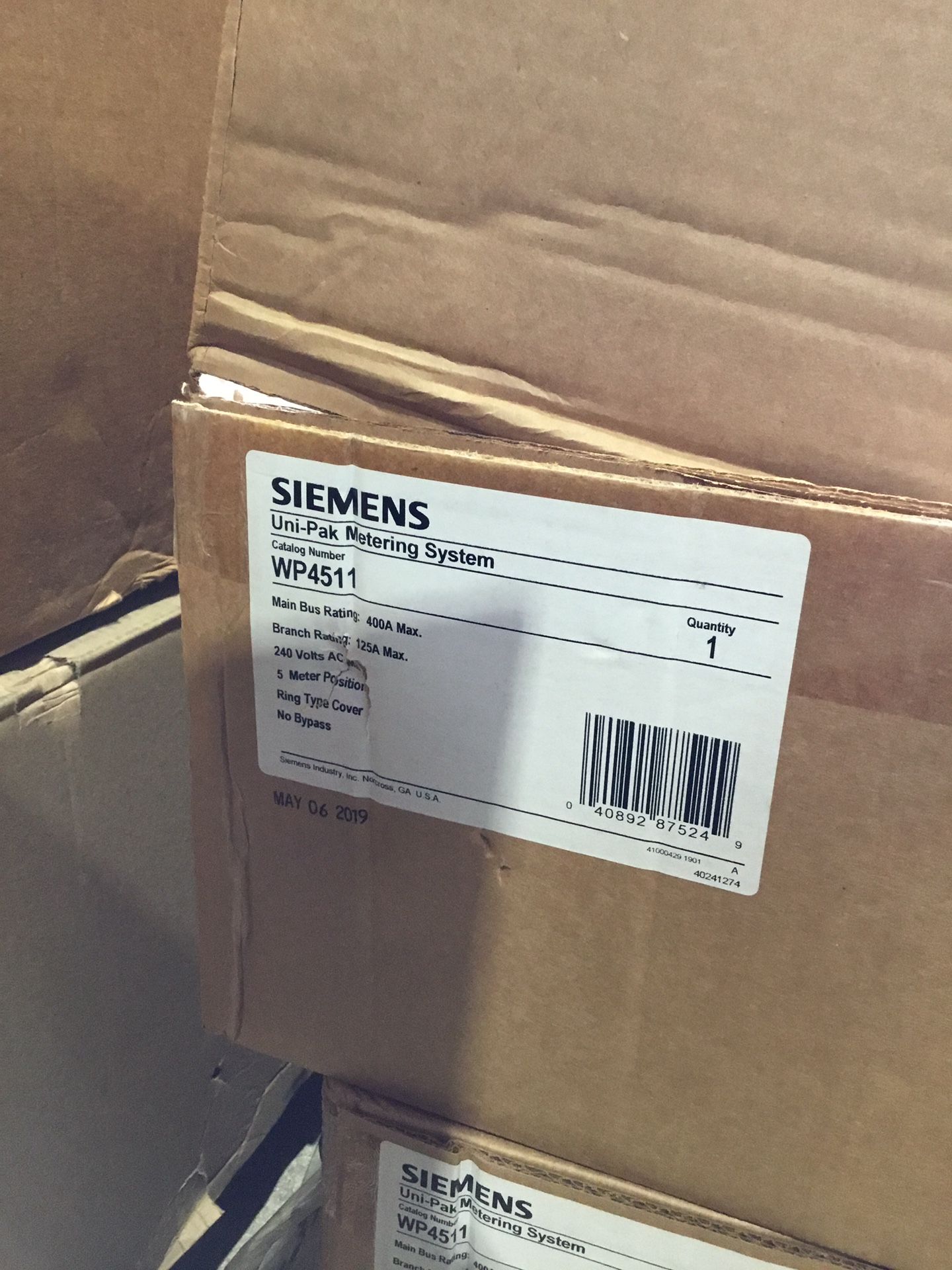 Siemens Uni- Pak Metering System Siemens Low Voltage's Multi-Family Metering Line of PAK Metering: Standard 125A as part of the PAK Metering: Standard 125A Group. Type: UNI-PAK Features: NO BYPASS Appn: GARDEN - STYLE Std: UL-50,67,414 V. Rating: 120/240V A. Rating: 400A Phase: 1PH Size: 9.00 x 39.19 x 39.630 No. Of Cutouts: 18 Cutout Size: 1 x (1/2,3/4,1,1-1/4"), 12 x (2-1/2,2,1-1/2,1-1/4,1"), 2 x (4,3-1/2,3,2-1/2,2"), 1X1/2",2X4" Cable Entry: TOP OR BOTTOM FEED Terminal: 3X2 STUDS. Insulated.Appn:. Wall Mounted. Enclosure: RING