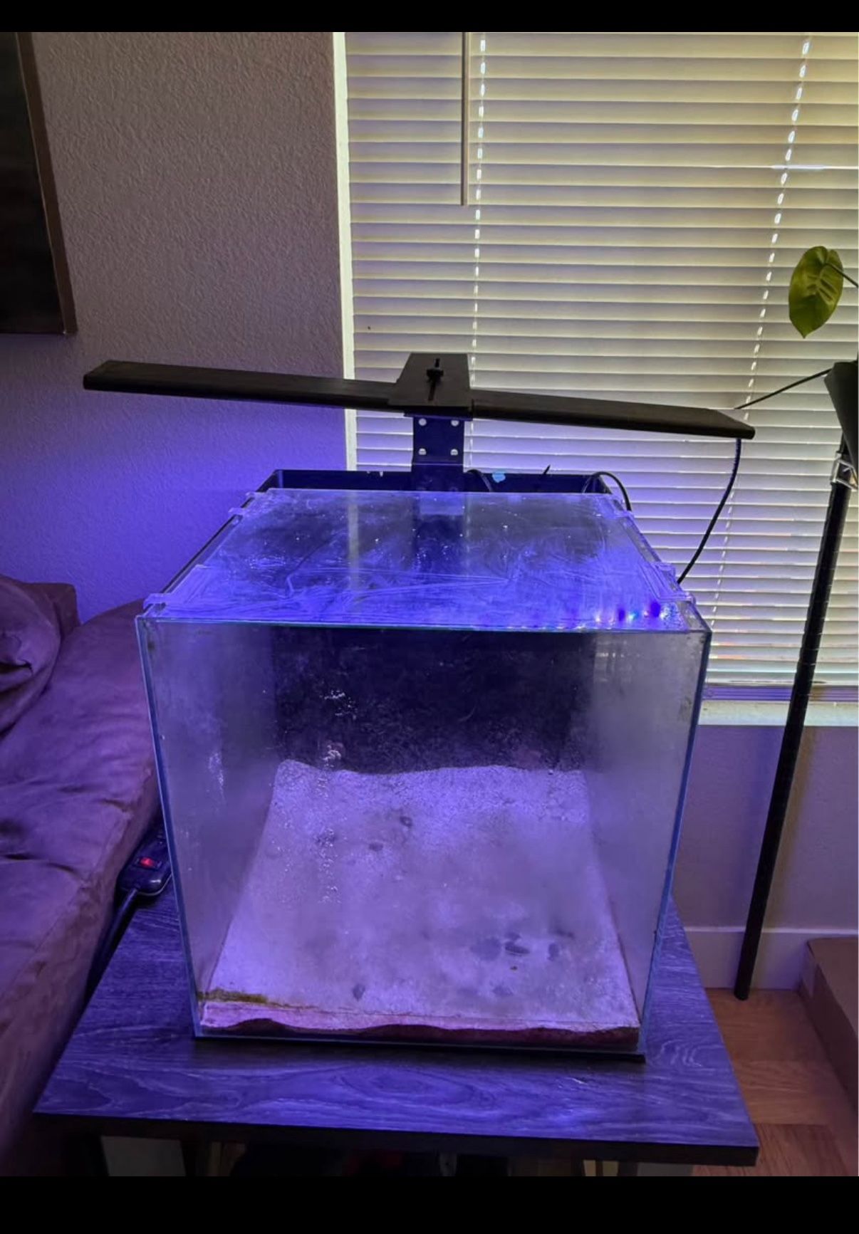 Selling this 30-gallon all-in-one box setup. It comes with a pump, light (runs on Loop app), thermometer, lid, a tank mat, and thermostat. It last held a full tank on 12/7/25. Switched up my tanks, so no longer need this set up. In great condition. No chips, cracks, or breaking of seals. DOES NOT COME WITH LIVESTOCK. TANK SETUP ONLY. 18” x 16” x 16.5” $225 takes it.
