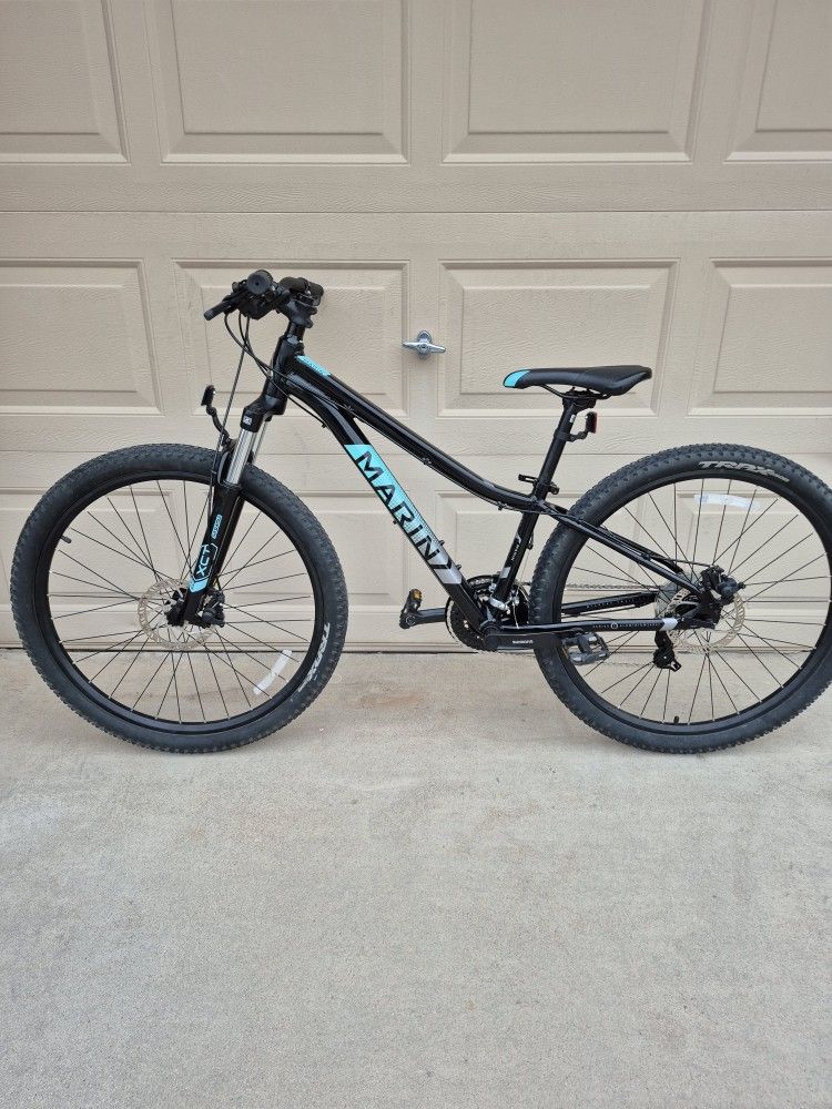 • XSmall Frame (fits riders from 4'7 to 5'2) • 27.5 Tires • 21 Speed (3x7) Drive Train • XCT SR Suntour Front Shock • Shimano Front/Rear Disc Brakes • Shimano Shifters • Shimano Tourney Front/Rear Derailleurs • $370 (CHECK OUT MY OTHER BIKE LISTINGS) Selling this great looking black color Marin Wildcat Trail 1 mountain bike. The bike is in great shape, well taken care of and always stored inside. Would make for a great entry level mountain bike for anyone wanting to get into mountain biking or if your just into riding the city bike paths and canal banks. All gears shift smoothly and the disc brakes work great. Bike has been washed, degreased, detailed, lubed and tuned up ready to ride and enjoy. $370 (CHECK OUT MY OTHER BIKE LISTINGS)
