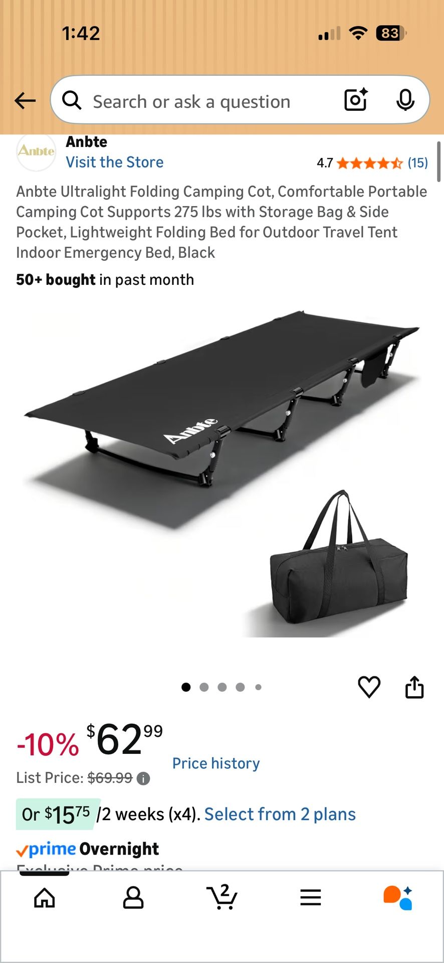 New regular price $69.99 Open box- new (never used) Pick up otay Mesa Color Black Brand Anbte Size 75.20L × 27.56W × 7.87H inches Item Weight 3.26 Kilograms Style Casual Assembly Required Yes 【Stable 275 lbs Capacity with Premium Materials】Engineered with four aerospace-grade 7075 aluminum crossbars and durable 600D Oxford fabric, this camping cot provides reliable support up to 275 lbs. The rigid frame prevents center sag for flat sleeping, and the breathable, wipe-clean fabric is built to withstand rugged outdoor use without the bulk of heavier materials 【Spacious Comfort with Practical Storage】With a full-size 75” x 27.5” sleeping surface and an 8” elevation, Anbte folding bed offers ample room to stretch out while keeping you off cold, damp ground. The integrated side pocket and hanging loops provide convenient, dedicated space for essentials like your phone, headlamp, or glasses, keeping them secure and within reach 【Exceptional Lightweight Portability at 6.8 lbs】Weighing only 6.8 lbs and packing into a compact 17”x8”x7” carry bag, this cot balances durability with true backpack-friendly portability. It is lighter than many heavy-duty cots, making it an ideal choice for anyone who prioritizes saving weight and space in their pack or car 【Versatile All-Season Sleep Solution】Perfect as a primary bed for camping, hiking, and beach trips, or as a compact guest bed for home and office use. Its combination of safety, light weight, and robust construction makes it a reliable and adaptable sleep solution for a wide range of adventures and everyday needs 【Safest & Simplest Setup with Side-Press Clip】The Anbte camping bed features an innovative side-press clamp design that makes the setup process quick and easy. Simply place the crossbars in place and press down for easy assembly 【Note】 When disassembling, use one hand to press both ends of the clasp while the other hand supports the clip to release it smoothly, avoiding the clasp snapping back and hitting your hand