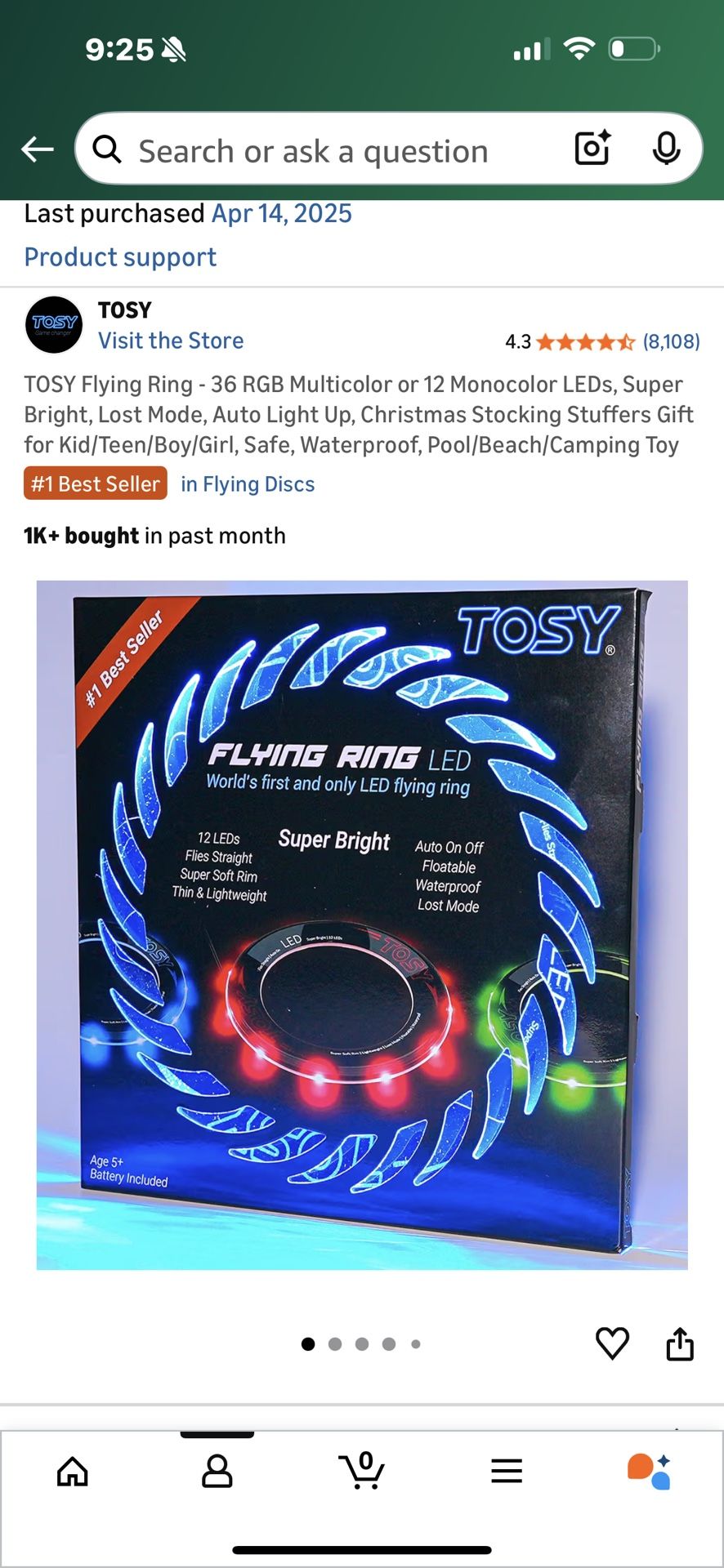 Never used glow in the dark flying ring! It’s waterproof and perfect for kids and adults!