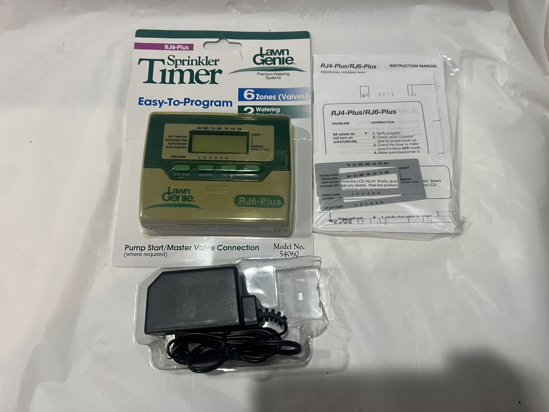 Lawn Genie RJ6 Plus Sprinkler Timer 6 Zones 2 Watering Times Model 54060 NOS (open box-never used)