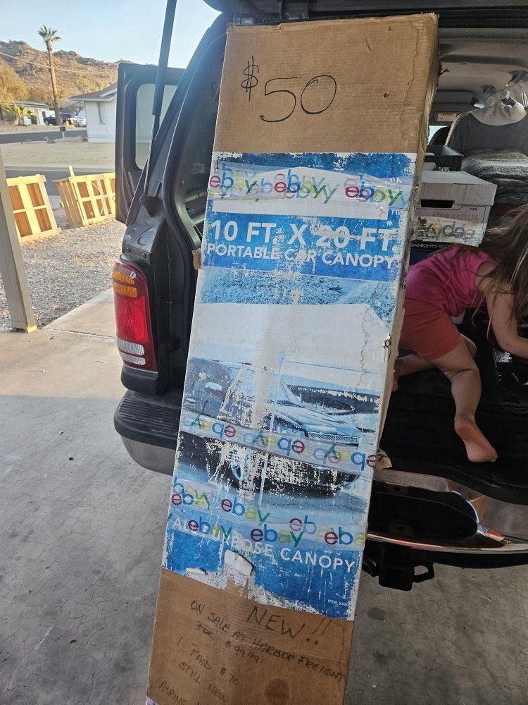 Bought it brand new from Harbor Freight. They sell it for $100 on sale. It's 10 by 20 feet. It's never been taken out of the box.