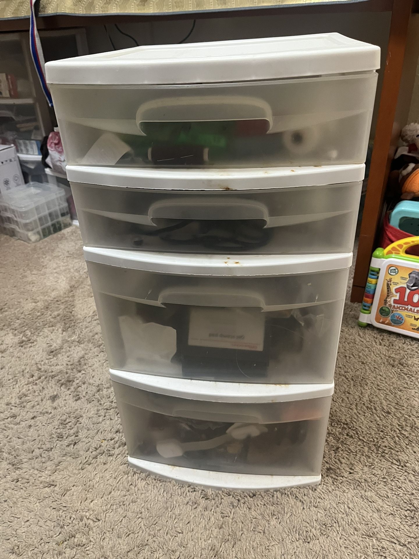 Two Sterilite plastic 4 drawers storage tower ( One With Wheels)