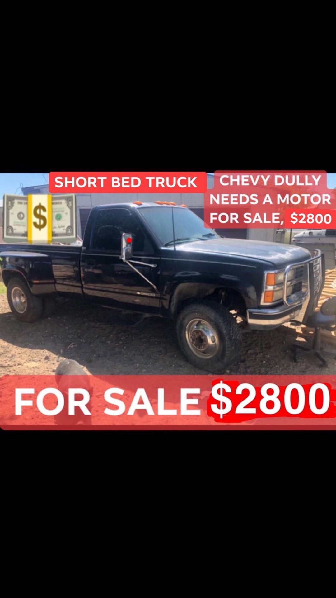 ITS A ROLLER TRUCK AKA PROJECT TRUCK NEEDS A MOTOR ITS IN SUPER GREAT CONDITIONS FOR ITS YEAR, ITS A DULLY CHEVROLET 3500 DOES HAVEA TRANSMISSION AND OLD MOTOR, SUPER GREAT PROJECT TRUCK FOR ALL THOSE THAT ARE TROKIANDO 🤠 LET ME KNOW WILL SALE FAST, YES CLEAN TITLE ON HAND 🤠 PURO TROKIANDO CUH 🐷🤠