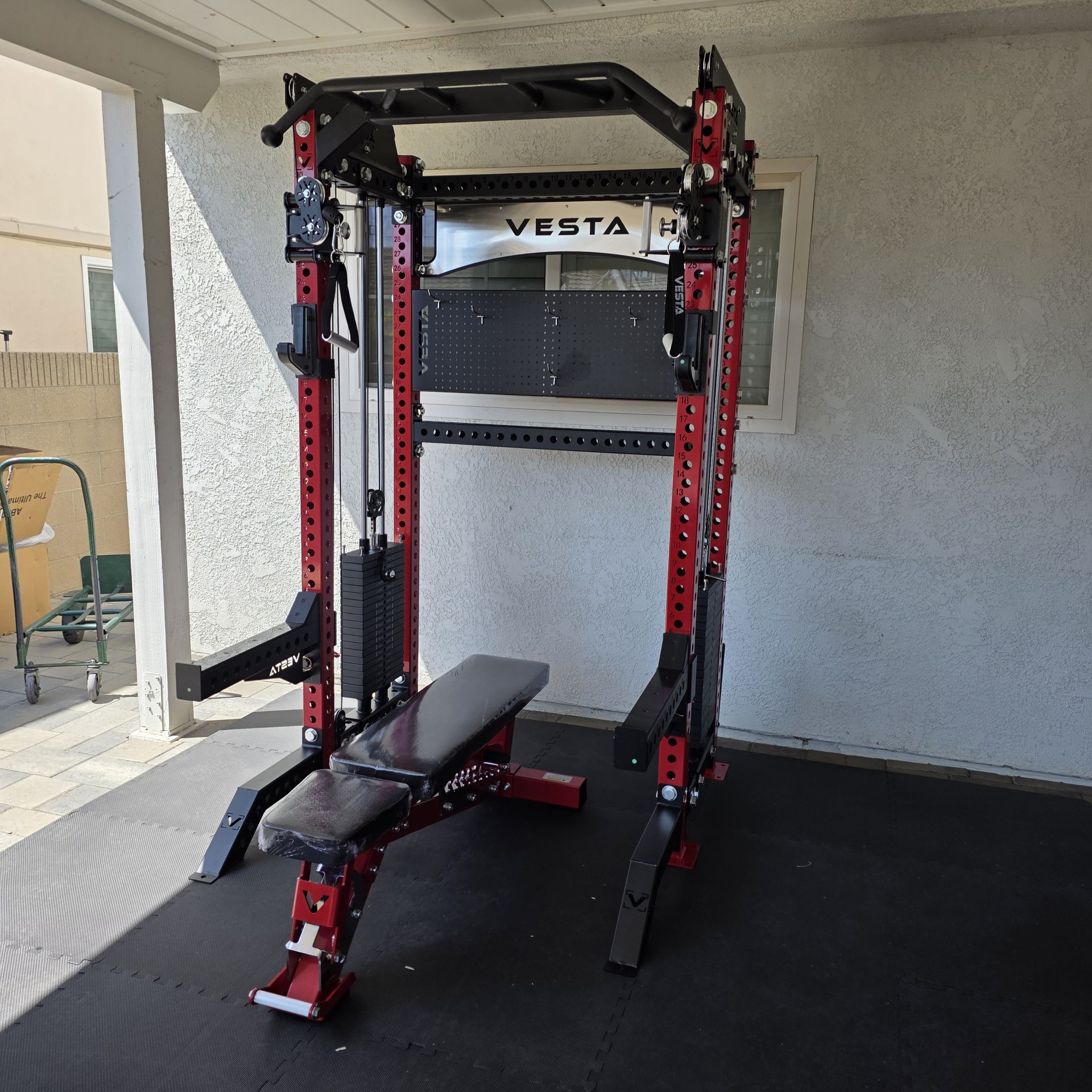 🔥FREE DELIVERY 🔥 SHOWROOM AVAILABLE, WARRANTY. INCLUDED, & VIDEO AVAILABLE 🎥 INSTALLATION AVAILABLE AT EXTRA COST [This Offer Includes] ✅️Vesta Ultimate rack 2 in 1 Squat Rack/Functional Trainer 2×200lbs weight stack 《ATTACHMENTS INCLUDED 》 ✅️Peg Borad for Attachment storage. ✅️ J-cups (2) ✅️Spotter Arms (2) ✅️Adjustable Pulley System 200lbs Weight stack (2) ✅️Barbell Holder(1) ✅️Pull up Bar(1) ✅️D handles (2) 🔴Weights, Barbell, and Bench, sold separately 🔴 {Specifications and Construction} ●Aluminum Pulley Wheels ●11 Guage Steel ● 3x3 Uprights ● 1 inch holes ●2:1 Pulley system ratio ●Same quality as ROGUE and REP but at a better price! ●Compatible with other Company Attachments. Colors available: All Black ⚫️ Red/Black ⚫️🔴 White\Black⚫️⚪️ Clear Coat/Black🩶⚫️ 《Dimensions 》 Height: 94" or 86" Height available too Width: 49" Deep: 50" {🟢Attachment Add Ons🟢} -Plate Holder Pair $65 - Dip station $130 Add a new station to your rack and you can execute many types of works out with a dip Attachment - Lat Pull Down Seat Attachment $240 Makes its easy for you to sit near upright to execute your lat pull down workouts! Highly recommend Attachment! -3 pcs lat pull down Attachment Set $100 3 different angles of lat pull downs! Very good to hit specific muscles on your lat pull down work outs! -Foot plate Attachment $88 Helps support your rows for back work outs. Nice size foot plate. Fits nice on rack and makes it comfortable to perform your workouts! - Weight Stack pin increase Attachment $80 Amazing Attachment can increase your weight stack from 200lbs up to 300lbs. With a horn that you connect to weight stack then you add weight plates manually to each side to increase weight of your pull! 🔥Bundle Deal available $3300🔥 ■Vesta Ultimate rack 2 in 1 ■Vesta Ab3000 Flat | Incline | ■260lbs Bumper Weights 45s/35s/25s/15s/10s ■7Ft 45lbs Olympic Barbell w/ Collars AND Foam pad 🔥FREE DELIVERY🔥 NEED More Pictures or intrested in more gym equipment shoot me a message! I can Help you Build Your Home Gym!