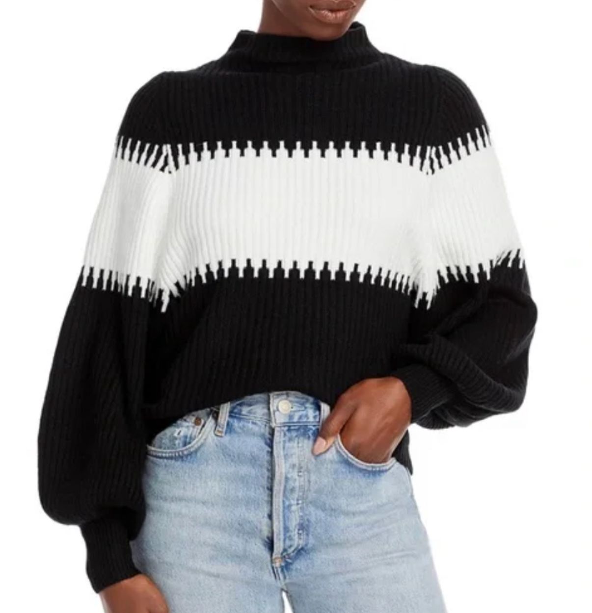 French Connection Sophia Colorblocked Mock Sweater Black White Knit Women’s XS