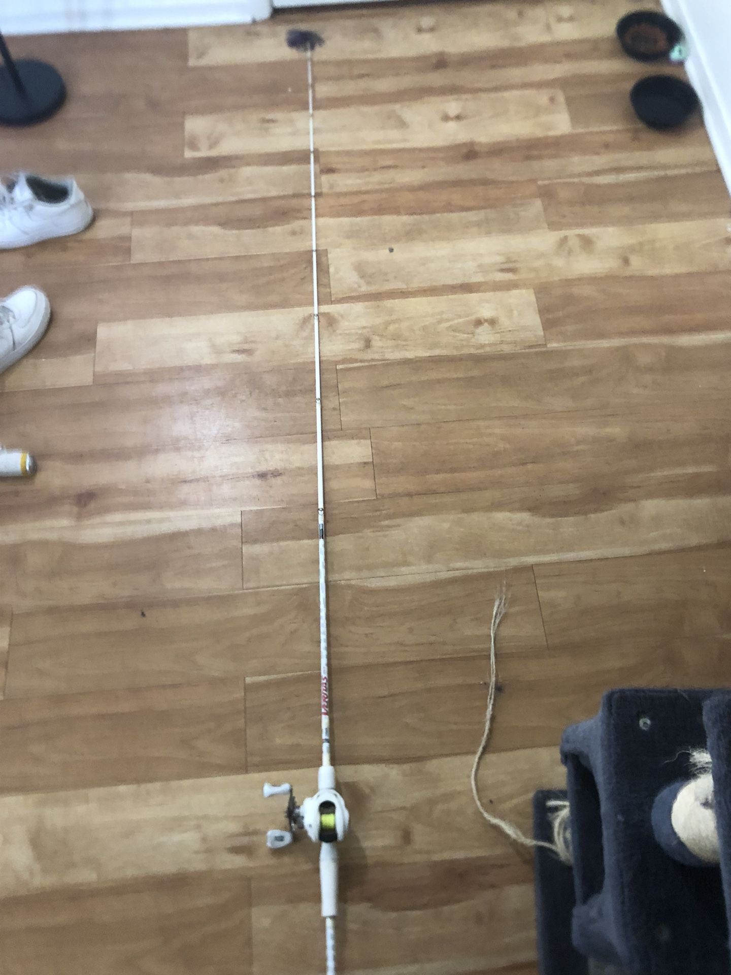 Bait caster, line on it right now is 14 pound, its a fast medium heavy rod ,its a all white grey and hints of red combo, the price new for them are 289, im asking 270 or best offers its in good condition hardly used it just a little dirty from storage