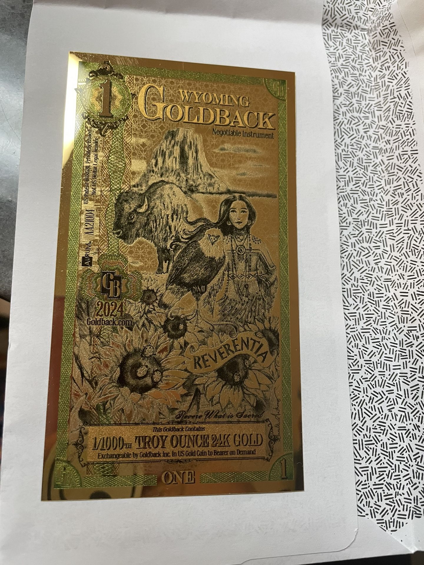 Wyoming goldback note $10