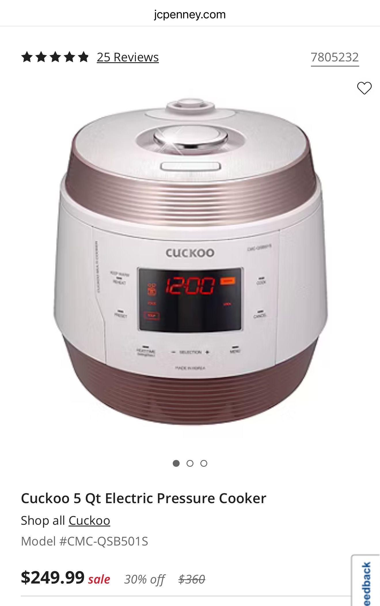 CUCKOO CMC-QSB501S 5-Quart Premium Multi-Pressure Cooker with 2-Ply Stainless Nonstick Inner Pot, 13 Menu Modes, 6 Accessories, Fuzzy Logic Tech, 3 Vo