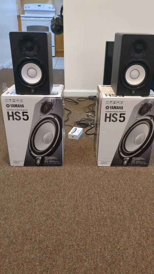Here I have a Brand New Pair of Yamaha HS5 Studio Monitors! Bought these for my home studio but my setup didn't work out so I'm selling these ASAP! Paid $425 for these at Guitar Center! Asking for 300 OBO! First come first serve tho! Let's make a deal. In Bronx area.