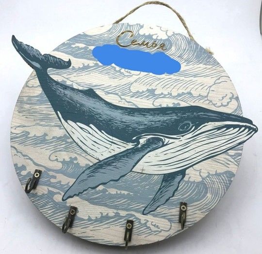 Handmade wooden whale Keychain holder.
