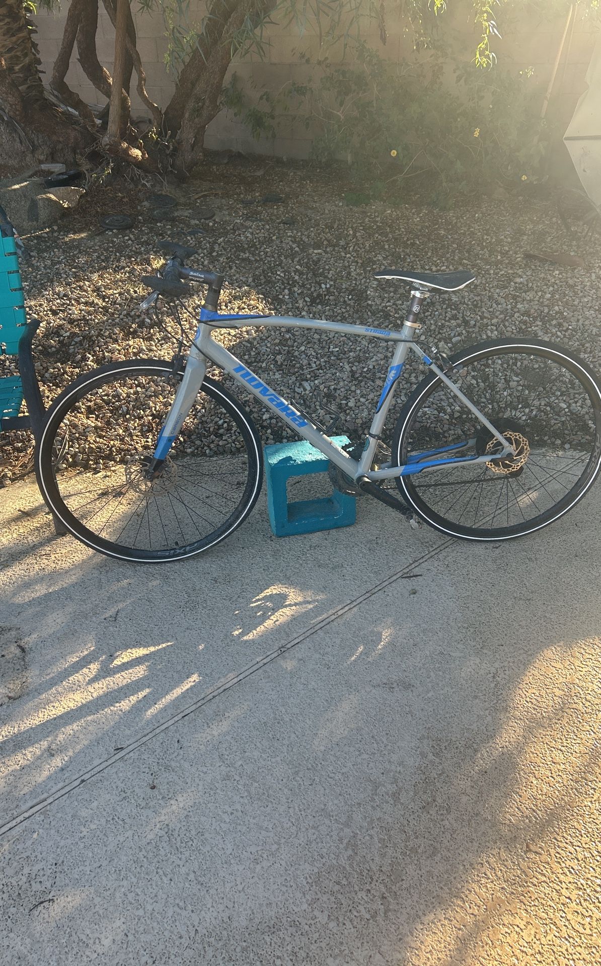 Frame: lightweight aluminum frame with carbon forks design for vibration damping. Drivetrain: 27-Speed Shimano drivetrain 3X9 Handlebars: Flat Wheels: 700cc road wheels 20” Frame