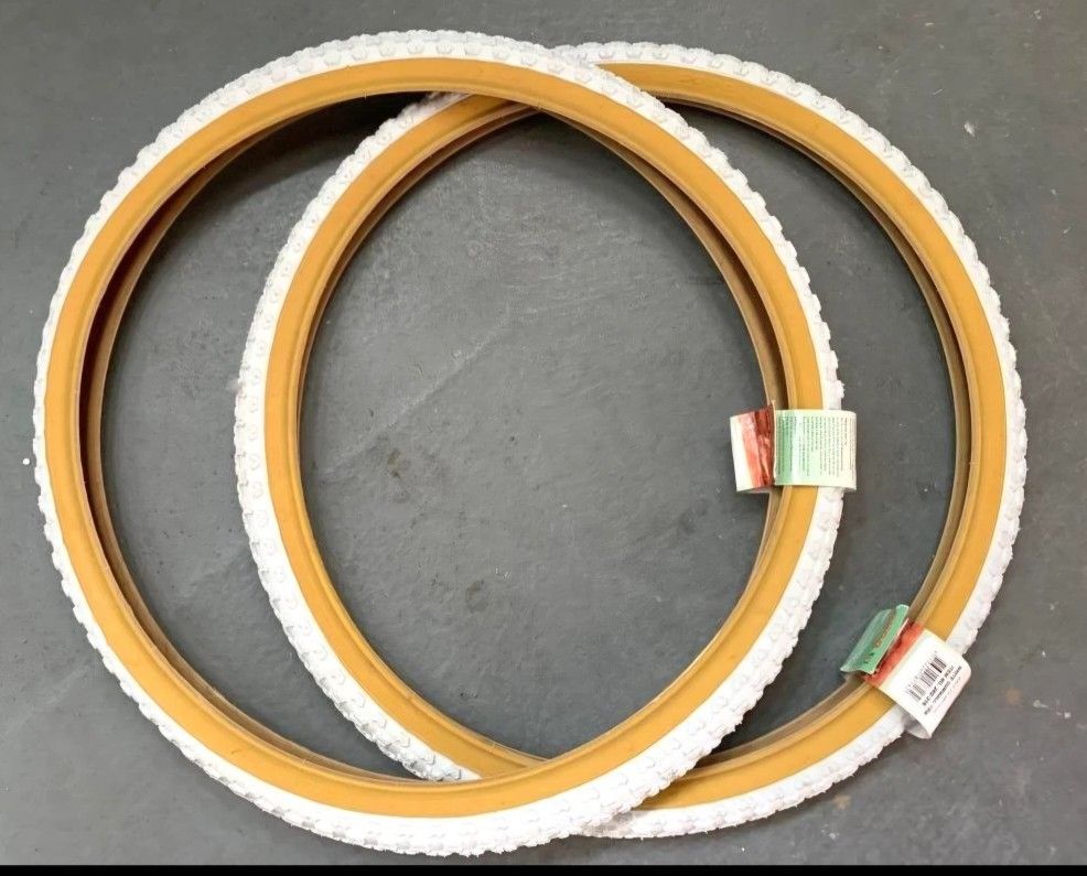 PAIR(2pcs) BICYCLE TIRES 24" X 1.75 WHITE/GUM WALL DURO COMP BMX BIKES