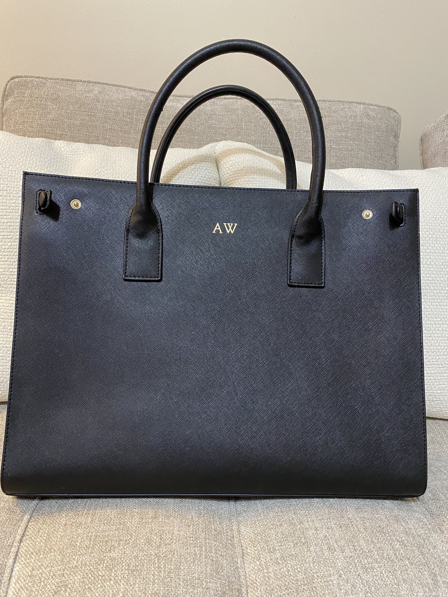 Accommodate Laptop with tree generously sized internal compartments , included a centre zipped pocket this tote exudes sophistication and luxury. Beautiful gift for Christmas!!!!