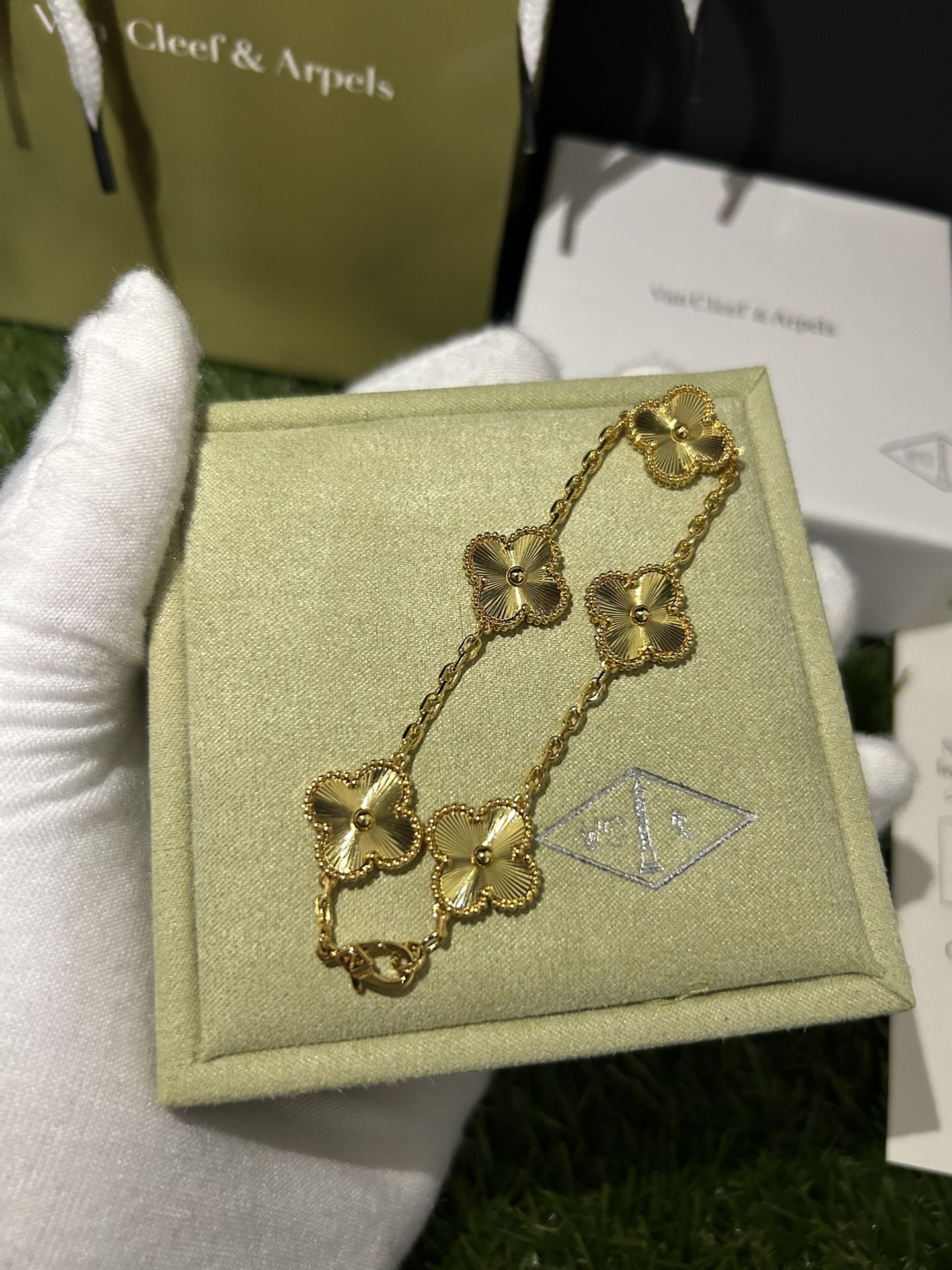 π€ Accepting Reasonable Offers π ππ‘π’π© πππ¦π / πππ±π πππ² π¨ No Waiting π Condition as Shown in Photos β¨ Fully gold clover bracelet with detailed textured accents for a bold, luxury shine. Clean, rich look that stands out on wristβperfect for everyday wear or special occasions. π© ππ π¦π π¨π§ ππ @π«ππ²π¬π‘π¨π©ππ¨ for fast checkout or bundle offers. Once itβs gone, itβs gone. π¬ Quick Replies, Always.