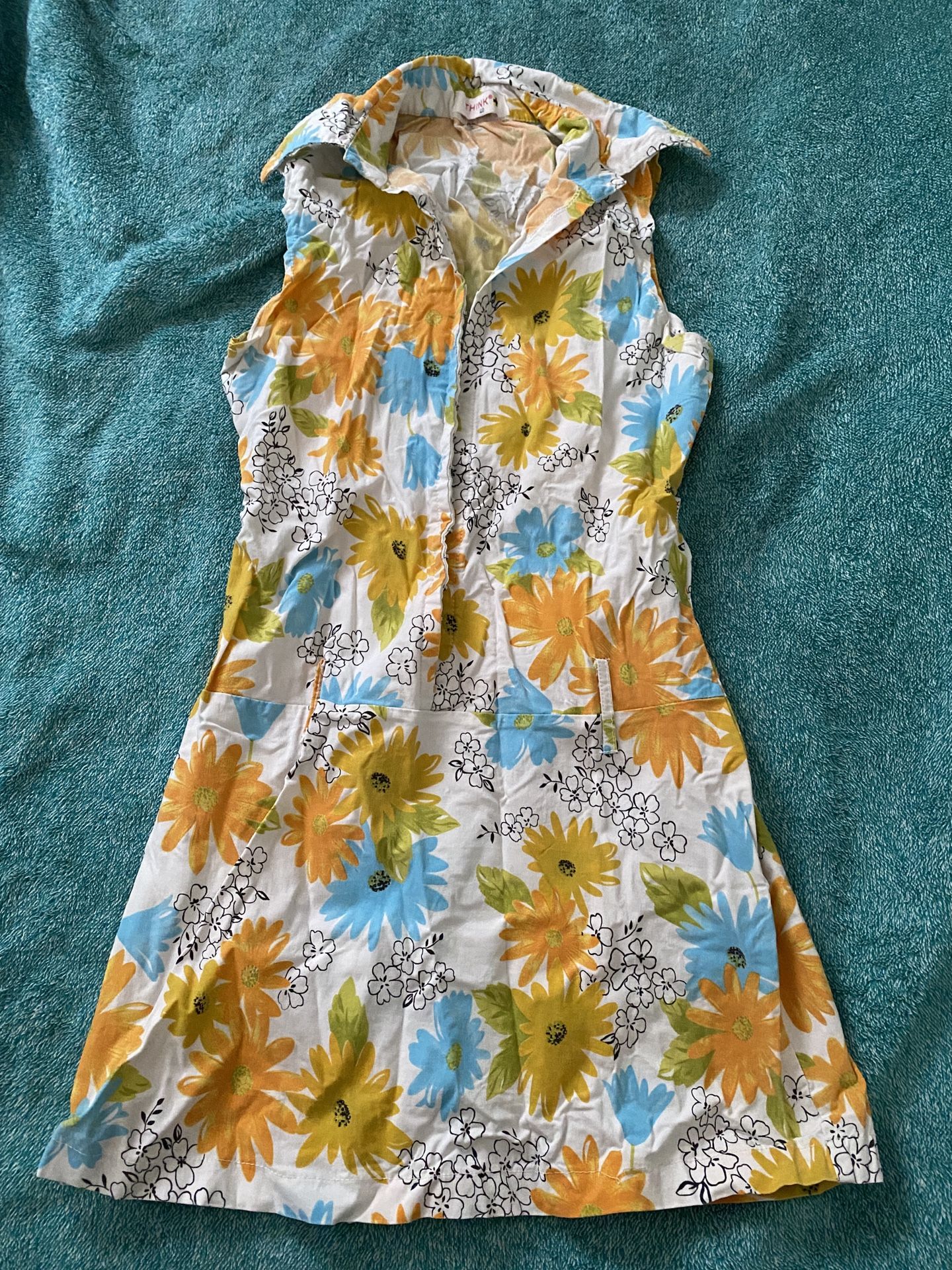 THINK Blue Orange White Flower Hook Dress - Women’s Small (40 EUR)