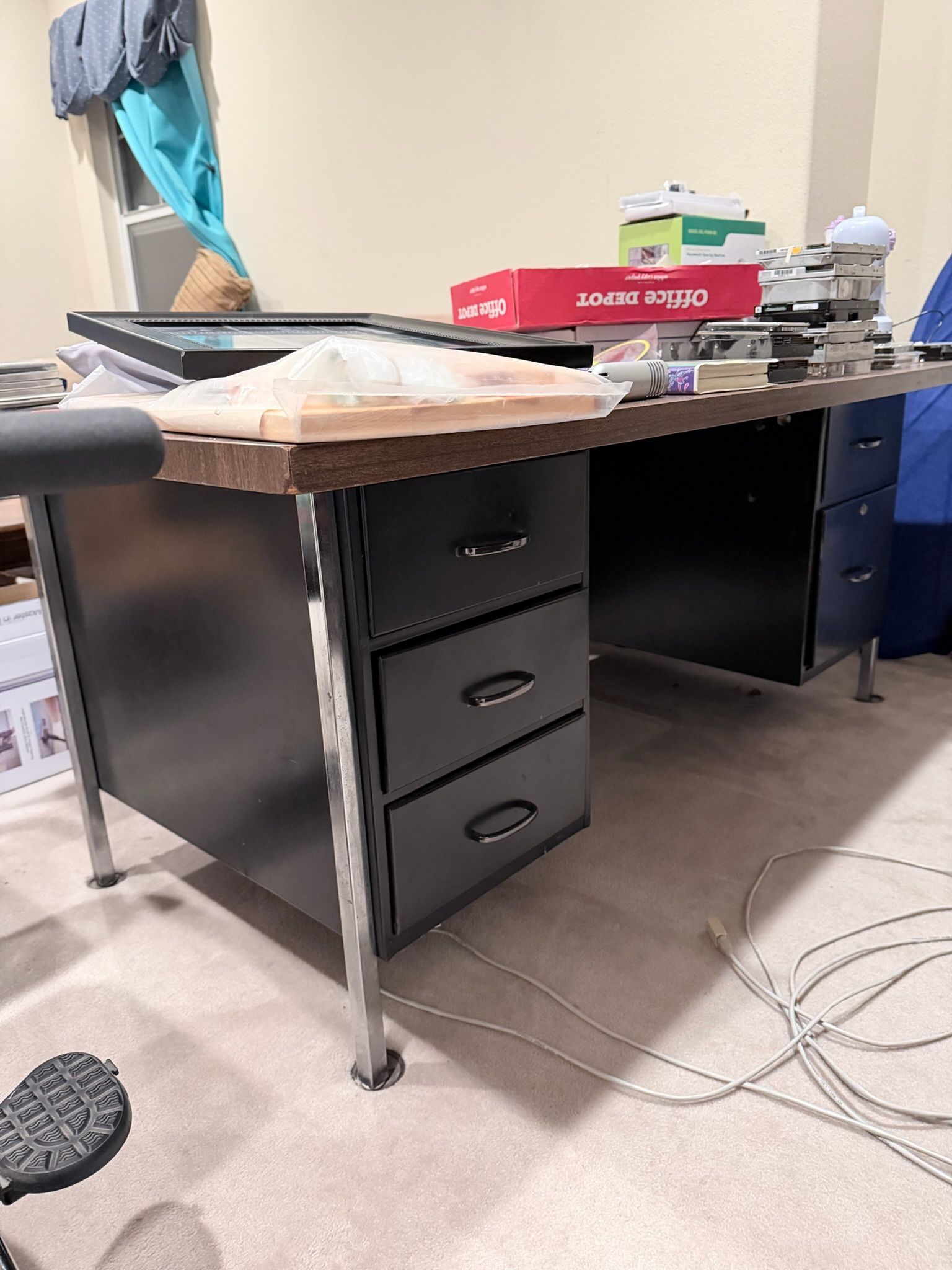 Free desk. Has 5 drawers. Solid wood top 48”L x 30”W x 19”H