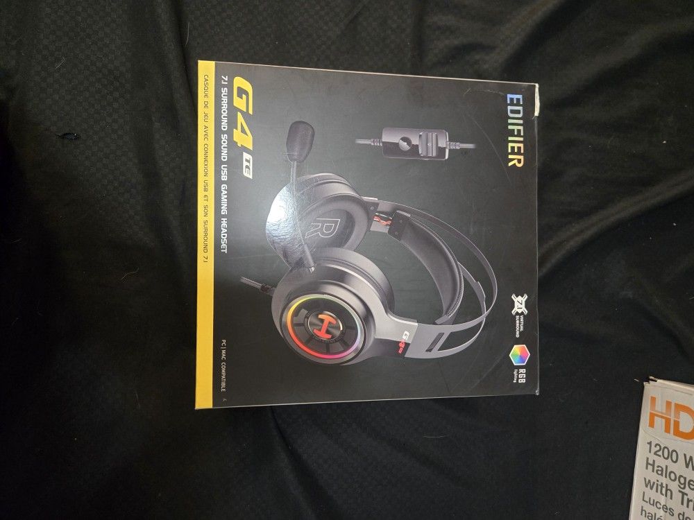 Edifier G4 TE gaming headset, black headband style and brand new. Super comfy over-ear design with virtual 7.1 sound, great for gaming or watching movies. USB plug, easy to set up and use.