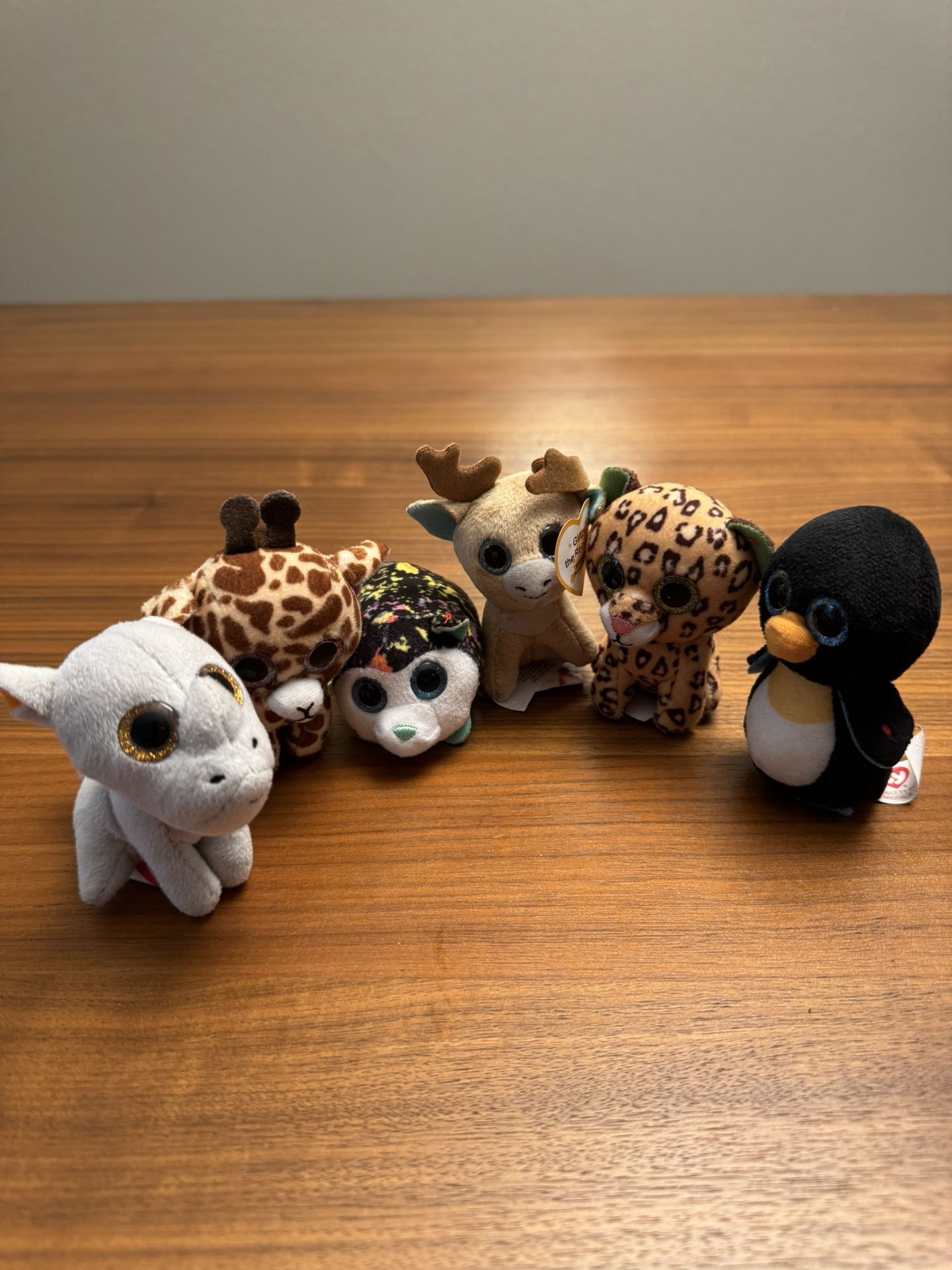 TY Teenie Beanie Babies McDonalds Glitzy Prince Waddle Twigs Freckles Spike (6) The product being described is a set of six TY Teenie Beanie Babies featuring characters from McDonald's such as Glitzy, Prince, Waddle, Twigs, Freckles, and Spike. These collectible plush toys are branded by TY and are part of the original Beanie Babies line. Each character is sure to bring joy to collectors and fans of both the Beanie Babies franchise and McDonald's promotions. These adorable and quirky toys are a fun addition to any Beanie Babies collection. These were never played with but opened. Please review photos for more information.