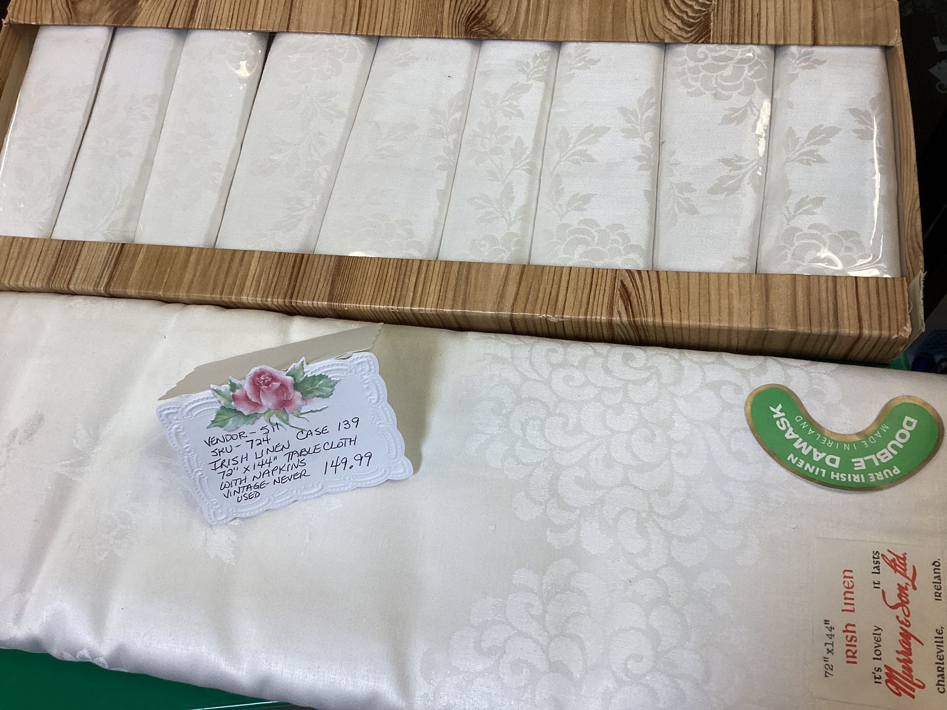 Vintage Irish Linen Napkins + Tablecloth 72x144” - Never Used!