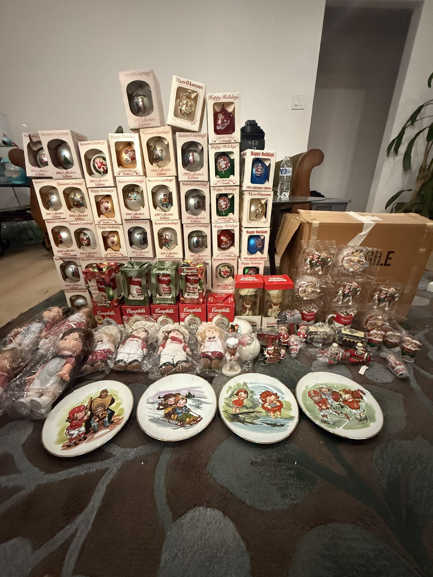 Need Gone Today- Make Offer -Giant Vintage Xmas Collection – Boxed Ornaments, Campbell’s, Dolls & More!