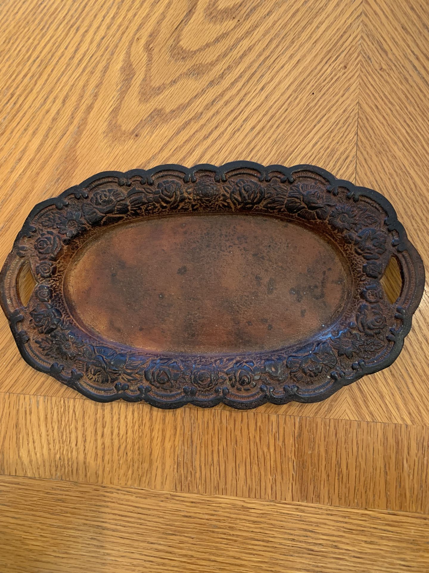 Old antique tray. Metal 10” long 6” wide