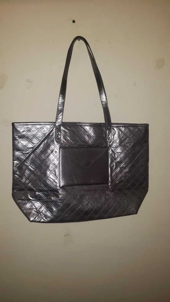 NEW BATH AND BODY WORKS BE JOYFUL METALLIC PURPLE SILVER ZIPPER POCKET WALLET TOTE DUFFEL DUFFLE BAG PURSE LUGGAGE CARRYING CASE