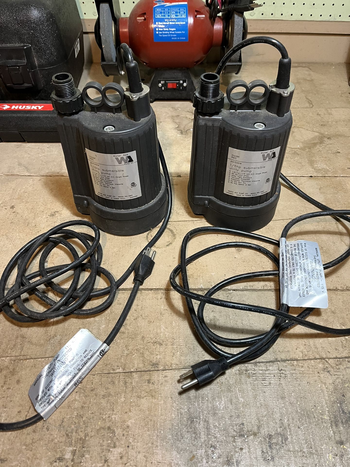 Two 1/6 HP Water Ace submersible pumps. $50 for both.