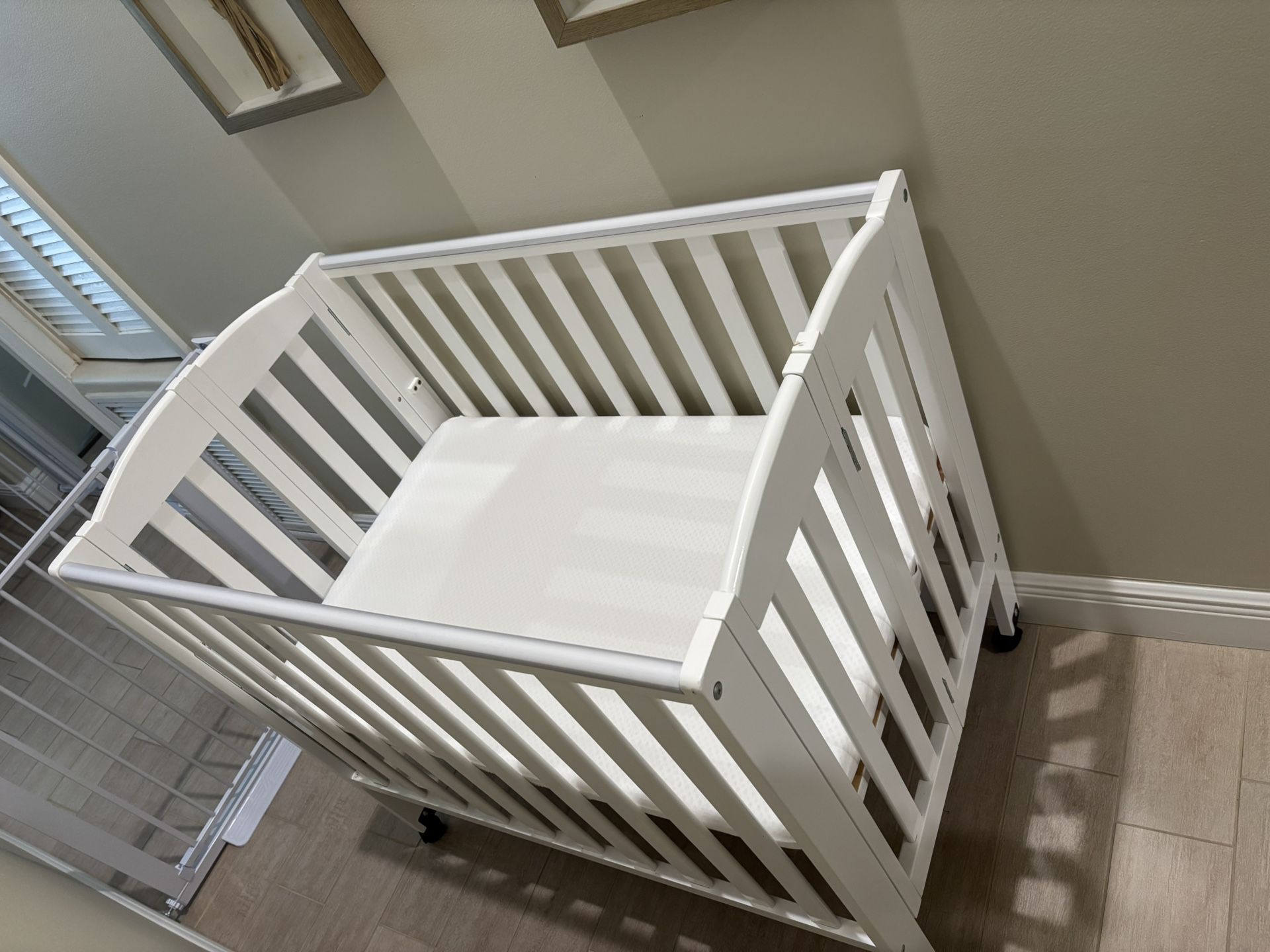 Portable crib with Newton breathable mattress included. Newton breathable mattress alone is over $200. Great deal here! Crib measures 41"L x 26"W x 40"H and folds up for easy storage.