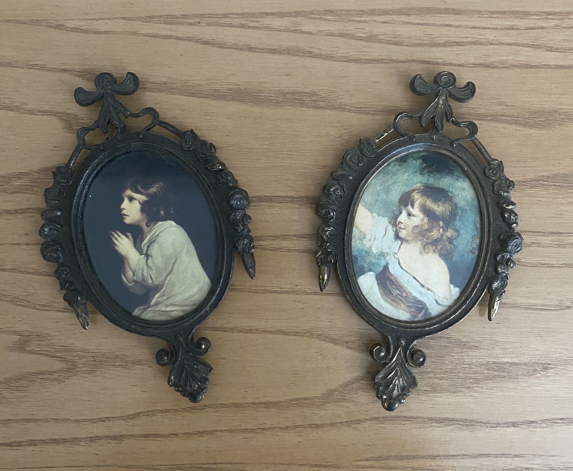 Vintage Italy Brass Oval Picture Frame With Victorian Child Portrait - 2.25"x3"
