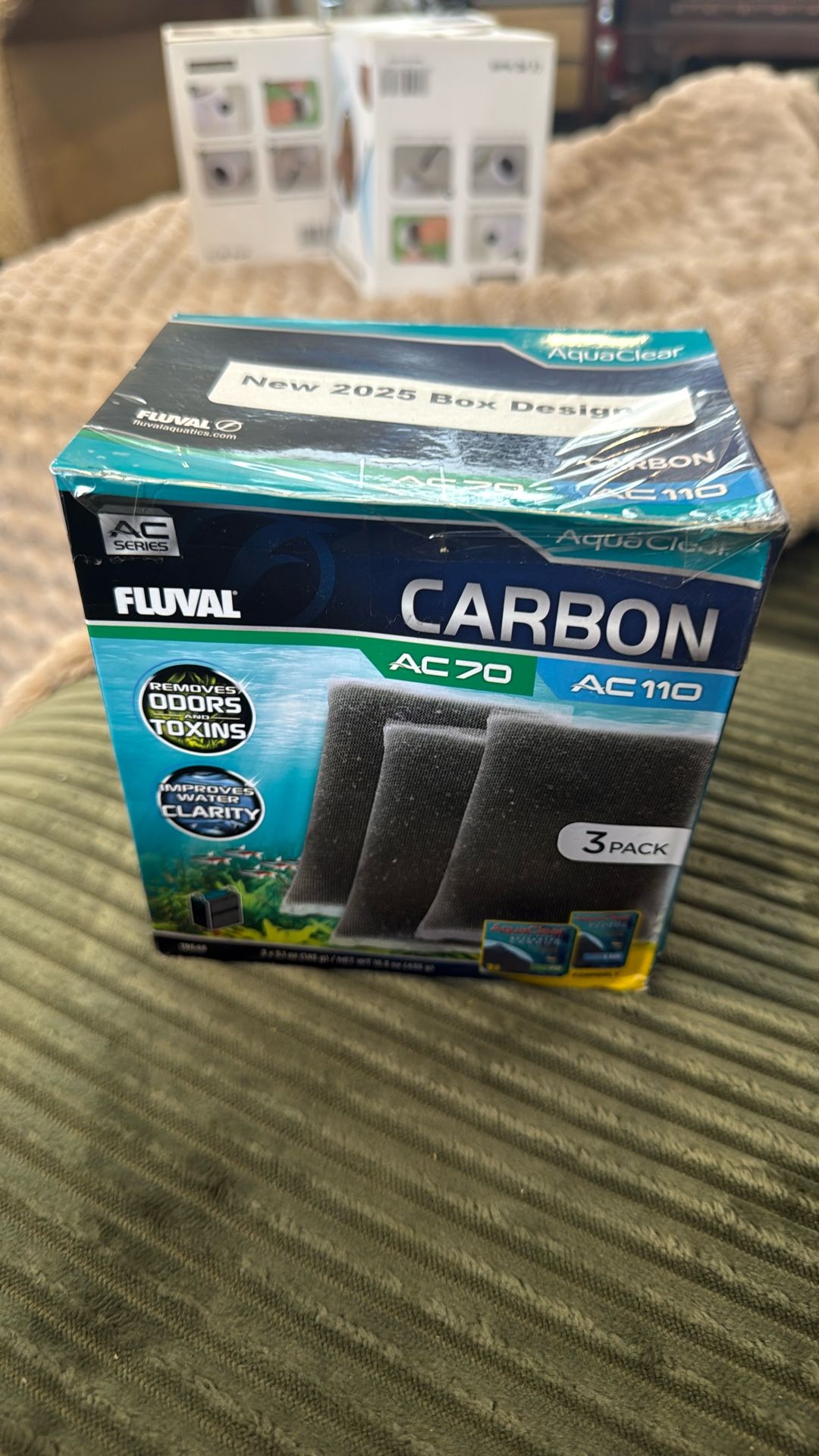 $12 obo - Brand new Fluval AquaClear Carbon Filter Inserts for aquarium filters. Details: • Brand: Fluval • Series: AquaClear (AC Series) • Compatible with: AC70 & AC110 filters • Quantity: 3-pack • Removes odors, discoloration & toxins • Improves water clarity • New 2025 box design • Factory sealed / unused Perfect for freshwater aquariums and routine filter maintenance. Purpose and Function • Chemical Filtration: This research-grade activated carbon removes liquid impurities such as odors, toxins, and discolorations (like yellowing or tea-colored water from tannins). • Water Clarity: It is designed to improve overall water clarity for both freshwater and saltwater aquariums. • Fish Health: By adsorbing impurities, it helps promote a healthier aquatic environment and does not raise phosphate levels.