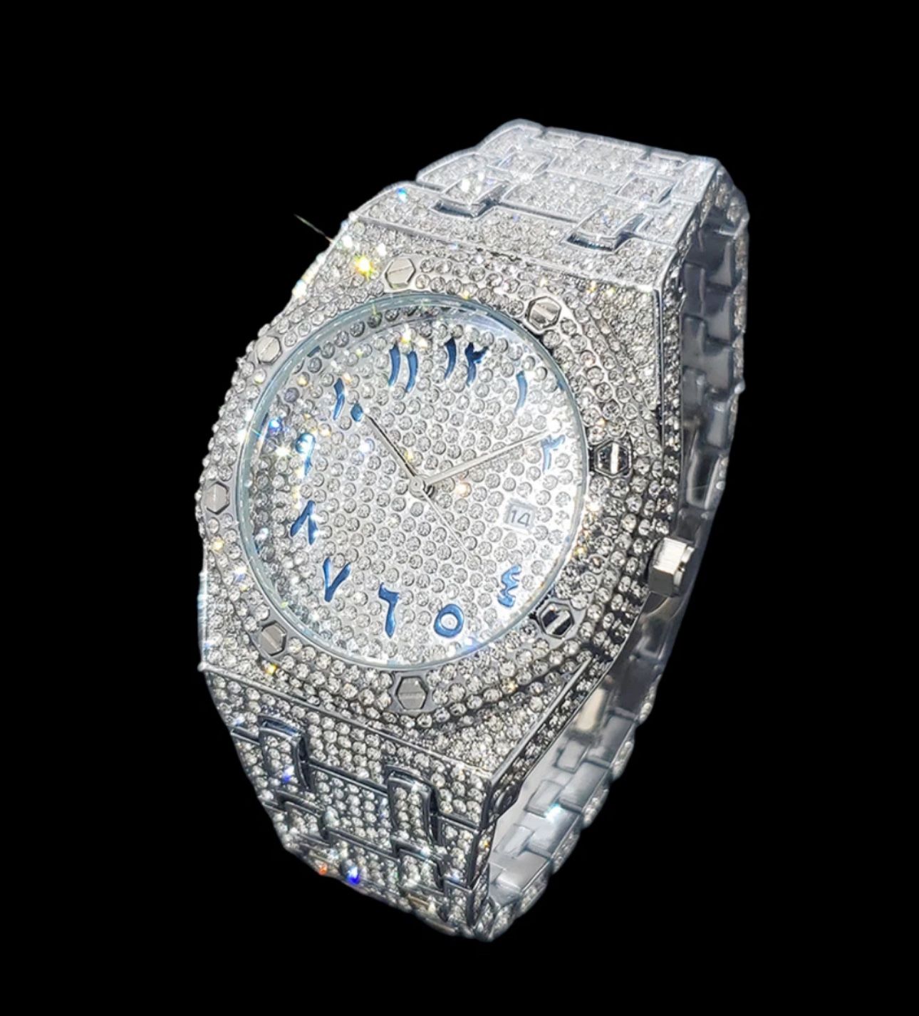 Bust Down Date Arabic Numerals VVS Iced Out Diamond Watch, Big Mens Watch