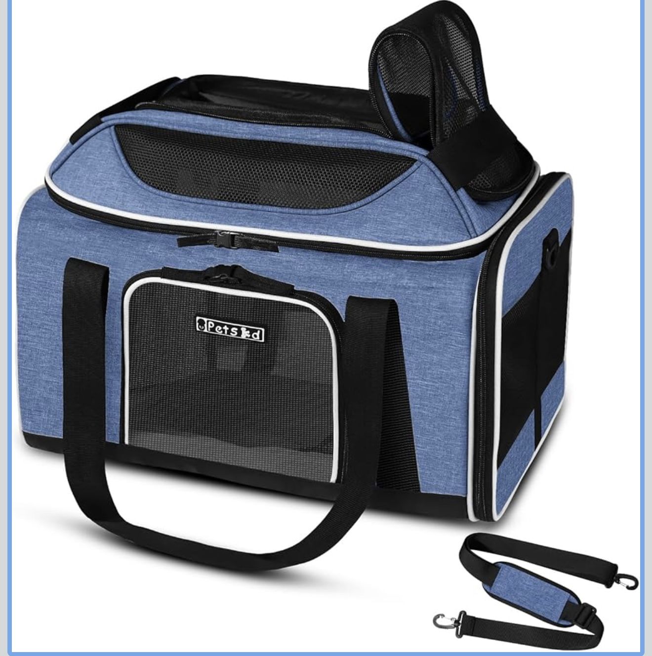 Petskd Top-Expandable Pet Carrier 18x13x9.5 Inches Southwest Airline Approved, Soft-Sided Carrier for Small Cats and Dogs with Locking Safety Zippers and Anti-Scratch Mesh(Blue)