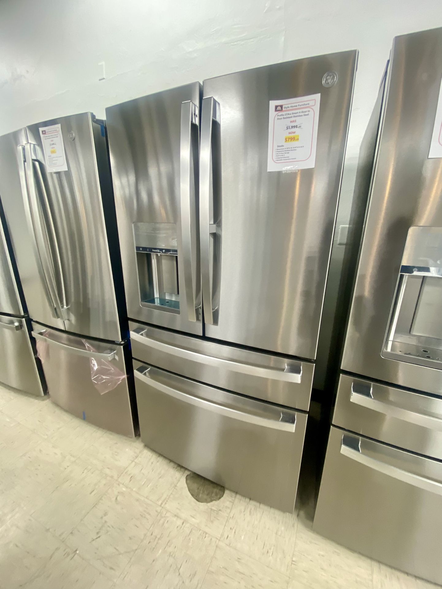 4 door bottom frozen refrigerator witn water and ice crushe and cubed dispenser,Wi-Fi integrated, locked drawer Dimensions H:70”, W:35.62 D:36.75 $799 Style Home & Furniture 1000 30th St., NW Canton, OH 44709. More information (330)491-9907 We open 7 days a week Monday to Saturday From 9am to 8pm Sunday 10am to 6pm Financing available Pick up available Next day delivery Visit us www.stylehomefurniture.net
