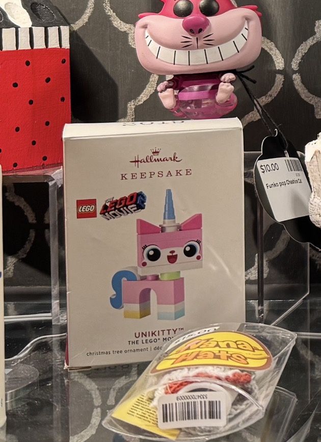 Brand new in the box, hallmark keepsake, Unikitty Lego unicorn Christmas ornament my booth is #90 on the lower level at Happenstance Vintage in North Aurora 211 S. Lincolnway Street open daily from 10-6 cash or credit plus tax Just off I 88 & route 31