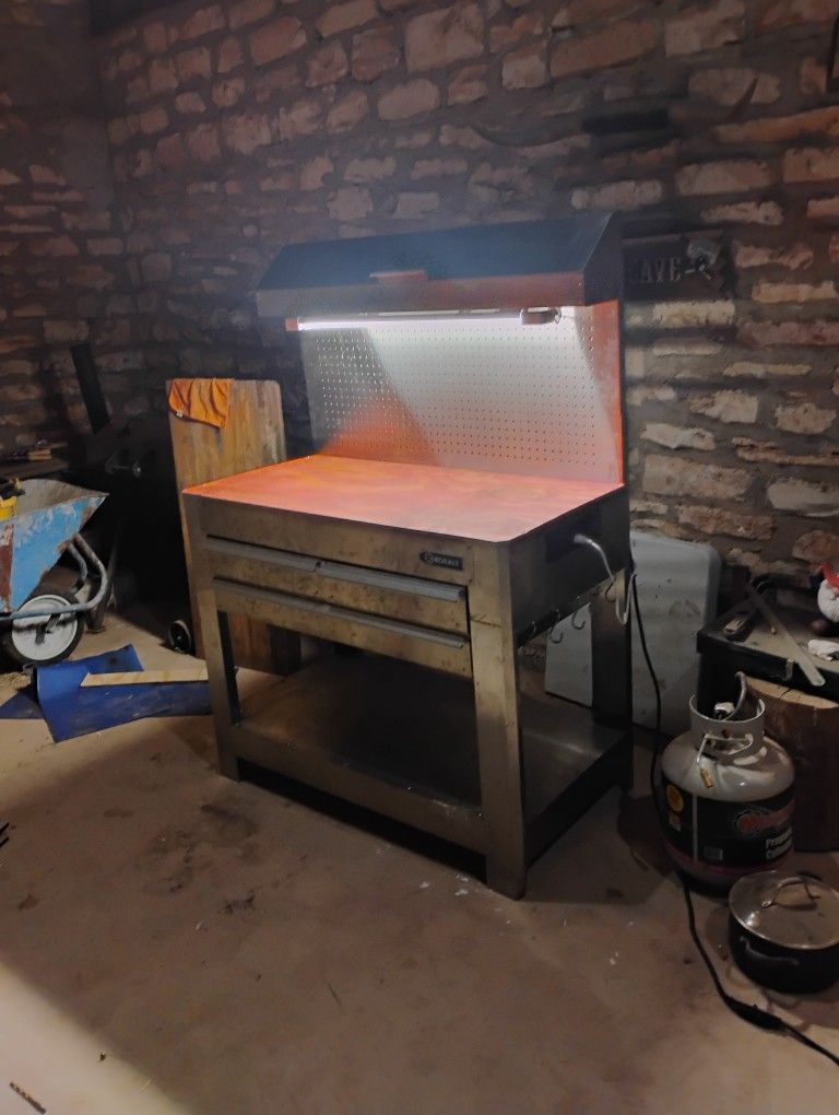 Stainless steel, 3 drawer workbench in used condition. Has working power strip and brand new LED overhead light. A few places with minor surface rust, should buff right out. If the post is up it is available. Open to trades for the right items (tools, outdoor related things)