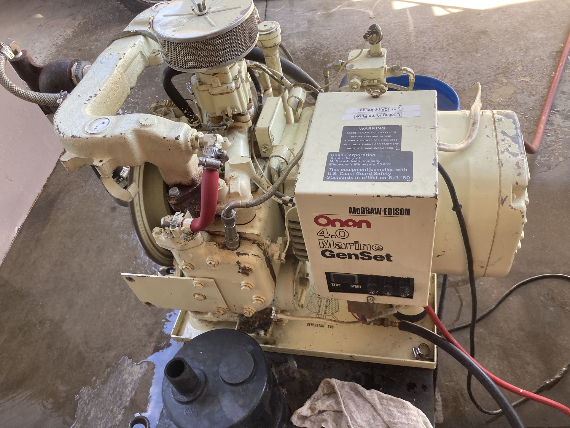 Good used onan 4.0 marine genset generator that was pulled out of a 1986 boat I parted out. Starts and runs great. I don’t know any other history on it and there was no hour meter. I can show you it starts and runs